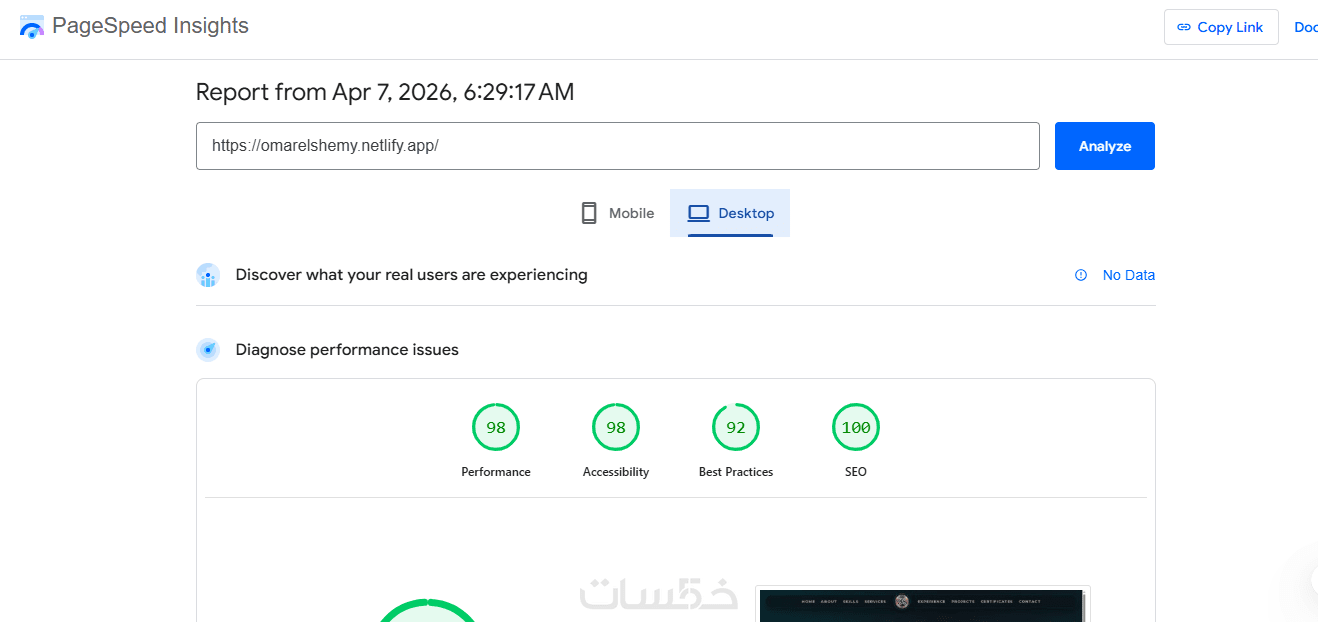 بصفتي مبرمج متخصص في تقنيات React و Next.js، أقدم لك خدمة تحسين أداء المواقع الإلكترونية ورفع كفاءتها التقنية للوصول إلى أفضل النتائج في اختبارات Lighthouse و Core Web Vitals.