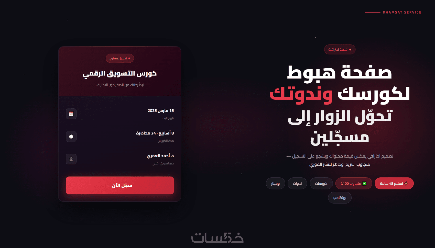 تصميم صفحة هبوط جذابة للاعلان عن كورس او ندوة