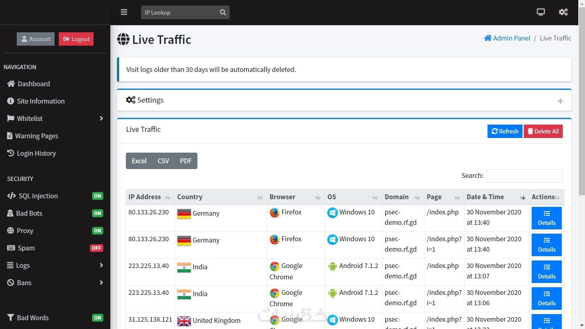- الزوار الذين يستخدمون خدمات حجب ip مثل proxy, vpn و tor