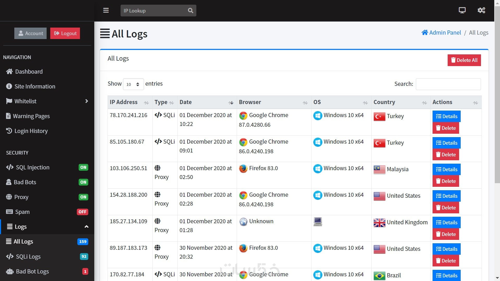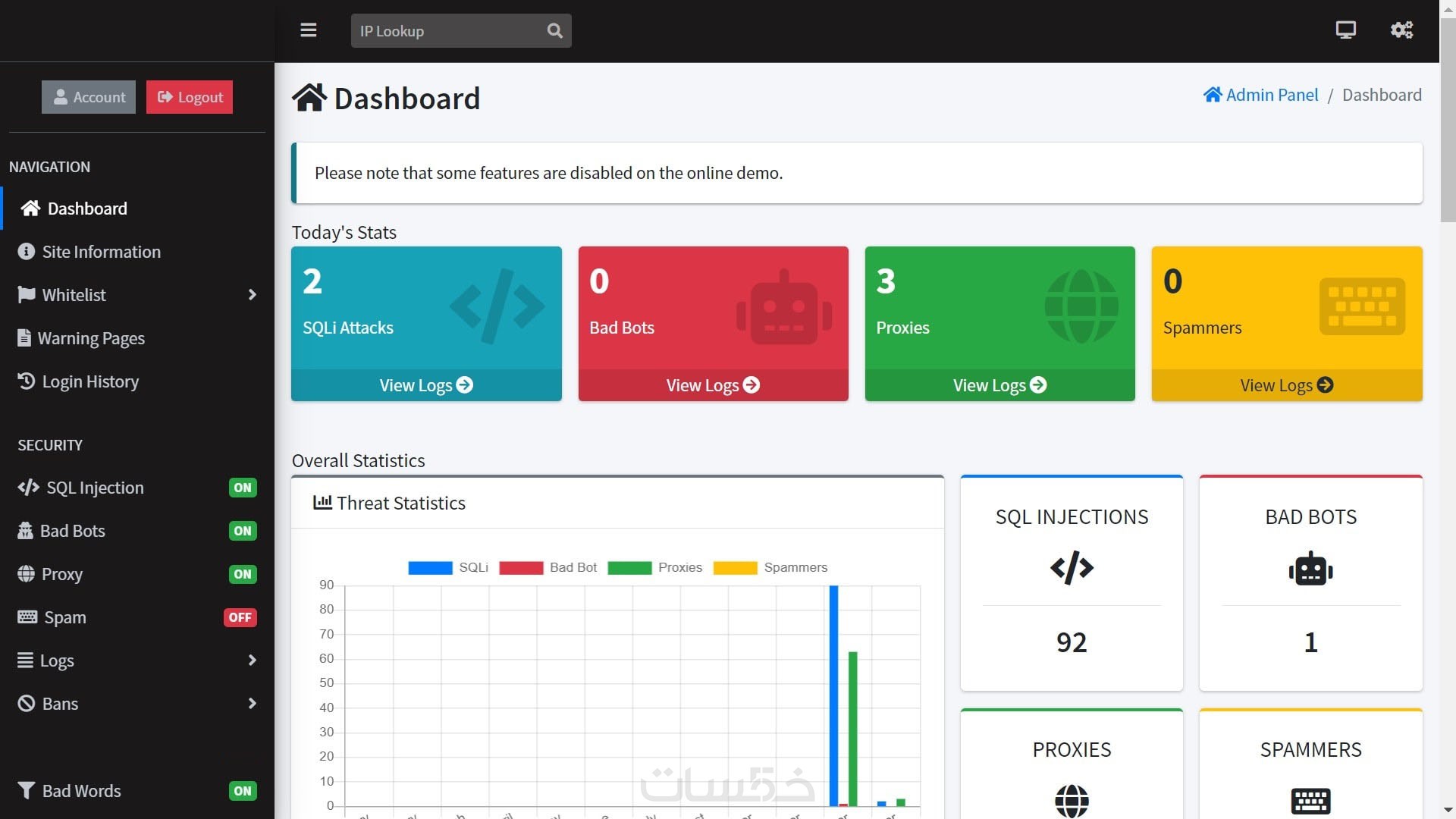 خدمة الحماية لموقع واحد / تطبيق ويب PHP, برمجة خاصة, سكربت جاهز, أو نظام إدارة محتوى (مثل ووردبريس, جوملا...) من جميع أنواع المخاطر التي قد تهدّد أمانه و حسن سيره, و ذلك من خلال برنامج جانبي خفيف يضمن كل ذلك بكل سهولة من خلال لوحة تحكم بسيطة!