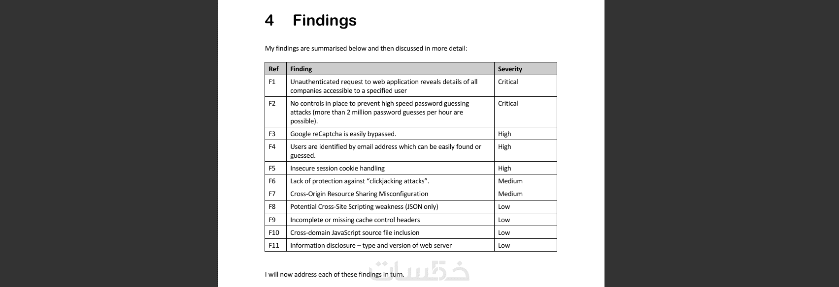 شرح تفصيلي لكل ثغرة تم اكتشافها