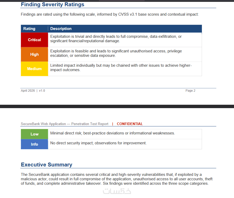 أقدم خدمة فحص أمني شامل لموقع ويب واحد (حتى 10 صفحات أو مسارات رئيسية)، وفق أفضل المعايير العالمية في اختبار الاختراق.