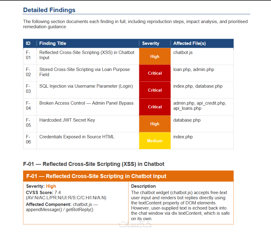 تقرير واضح يتضمن تفاصيل الثغرات والحلول