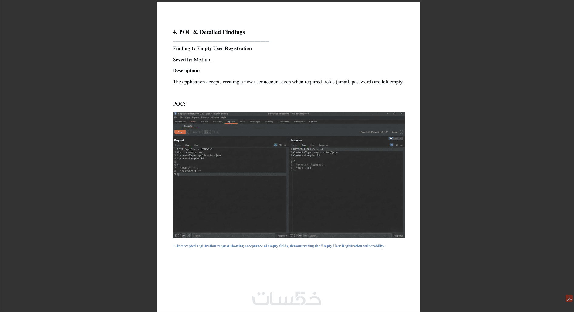تقرير احترافي: ملف PDF يوضح الثغرات المكتشفة بالصور مع خطوات تقنية لعلاجها.