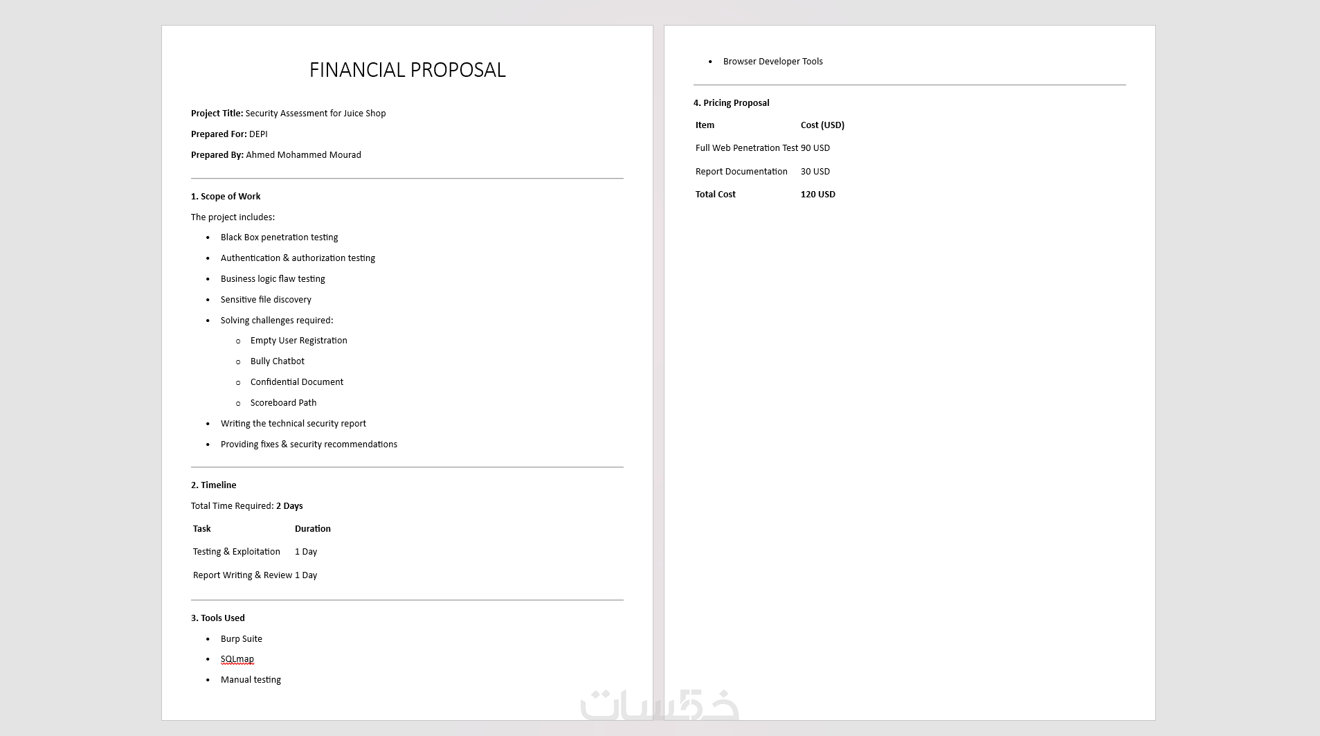 تسليم ملف PDF يوضح الثغرات المكتشفة مع لقطات شاشة (Screenshots) وتوصيات تقنية دقيقة لعلاجها