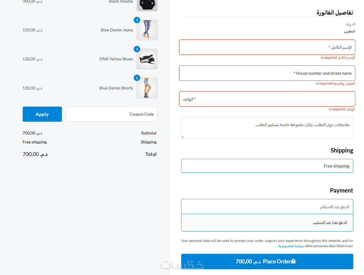 إعداد طرق الدفع المتاحة (تحويل بنكي – دفع عند الاستلام).