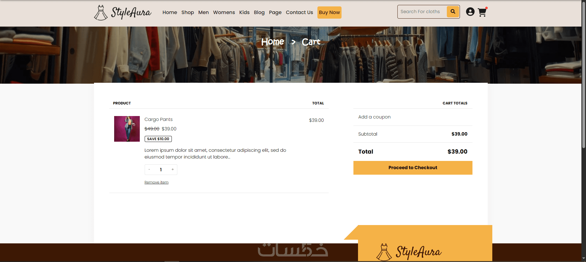 صفحة الدفع (سلة المشتريات وطرق الدفع).