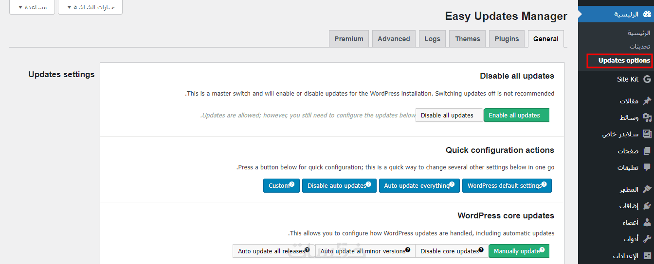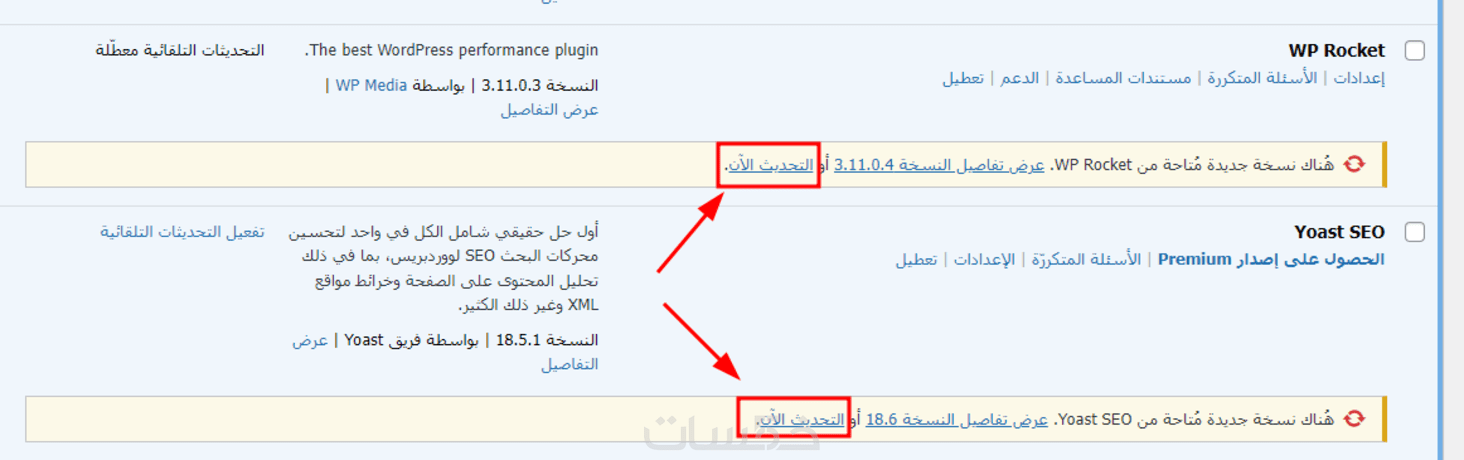 2 - تحديث نسخة ووردبريس أو إضافة أساسية للتأكد من الأمان والاستقرار .