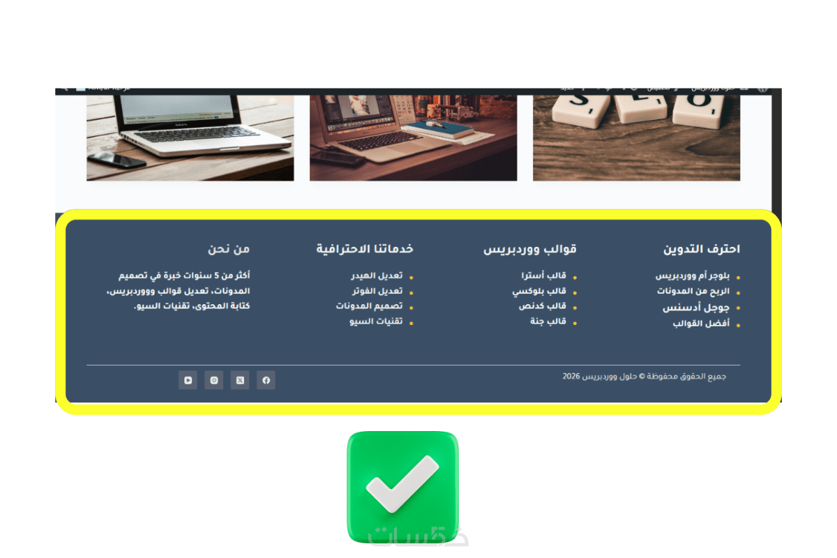 هل تعاني من هيدر أو فوتر غير منسق، عناصر غير مرتبة، أو مظهر غير احترافي في موقعك الووردبريس؟