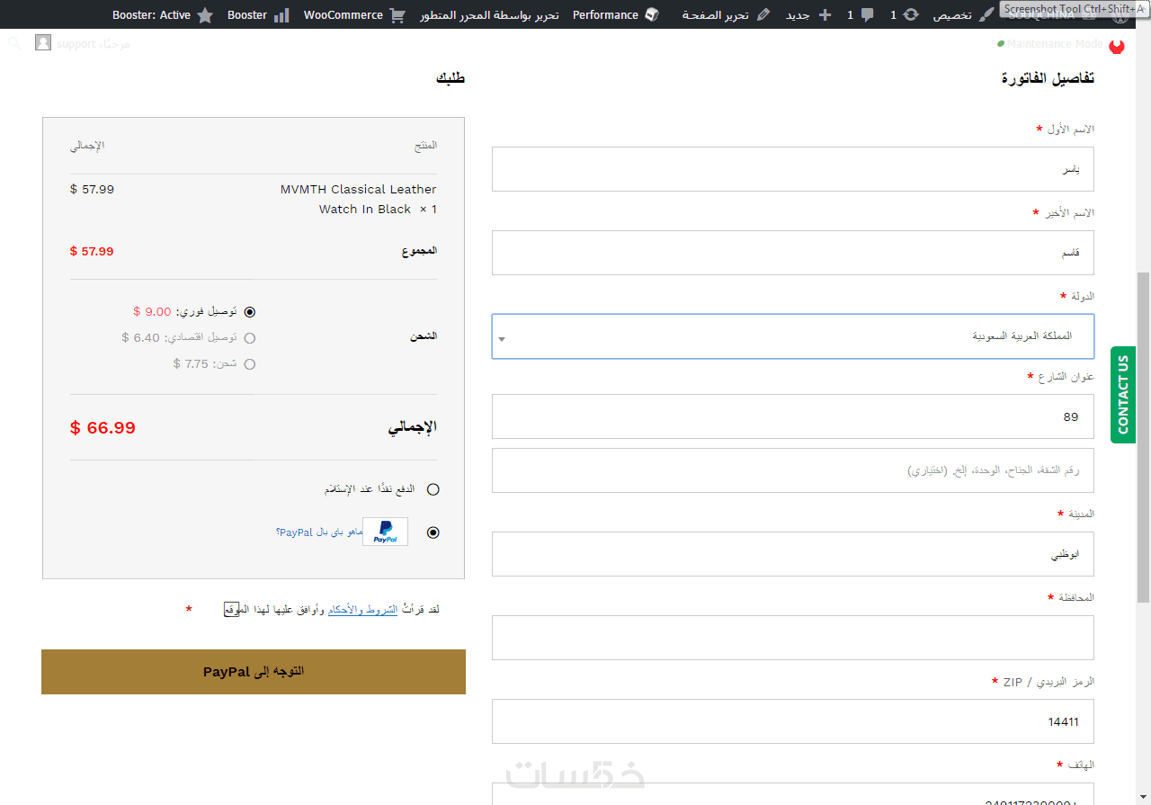 - تعديل صفحة الدفع (اضافة/حذف الاسم، رقم الهاتف ، العنوان ، ...)