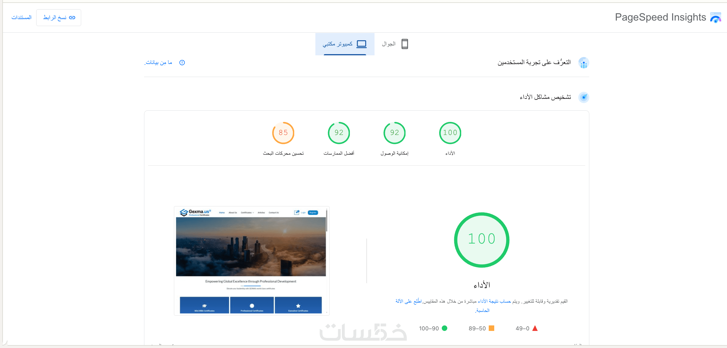 96% – 100% على أجهزة الكمبيوتر