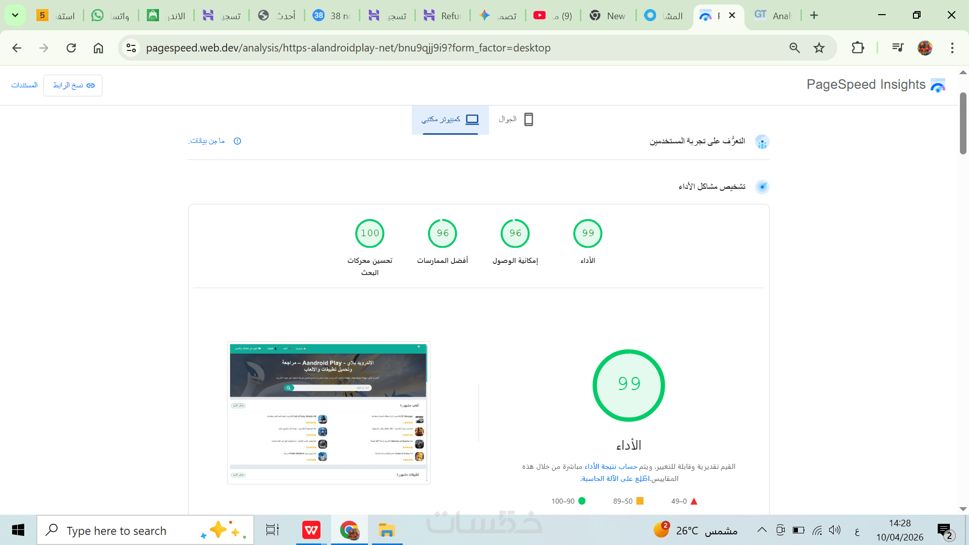 النتيجة: موقع أسرع، تجربة مستخدم أفضل، وزيادة فرصك في الظهور على جوجل.كما في موقع جولدن ووش الذي قمت بتسريعه وحصلت على تقييم