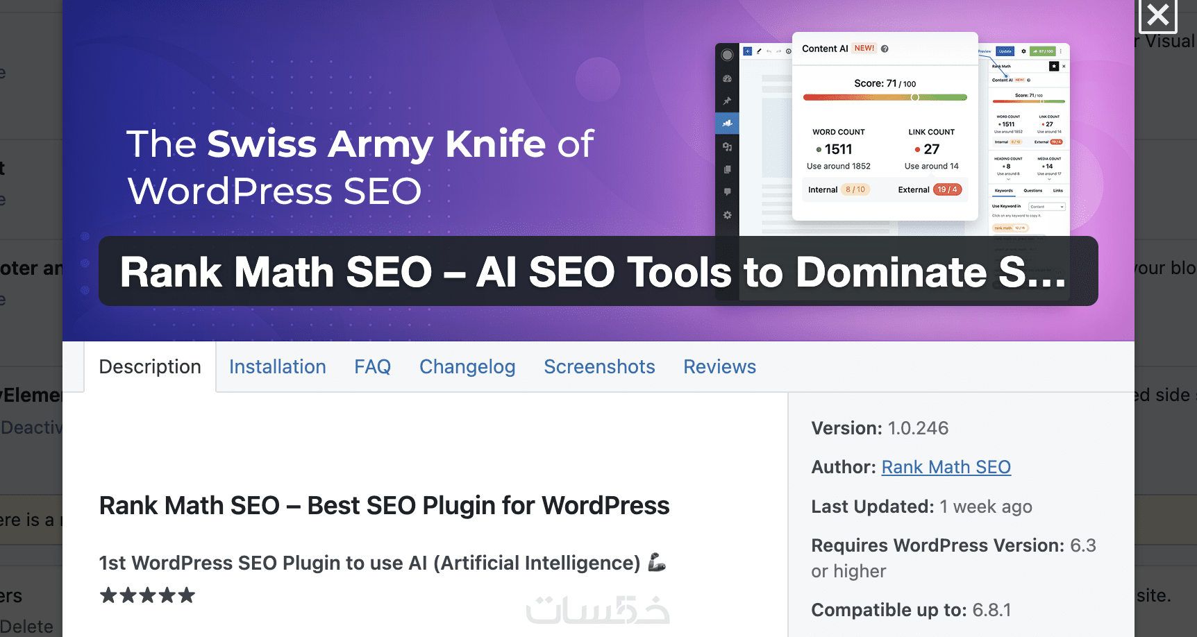 - Yoast SEO لرفع ظهور الموقع في محركات البحث وتحسين السيو الداخلي له وتحديد كلمات مفتاحية وتحسين الأرشفة وخدمة RSS.
