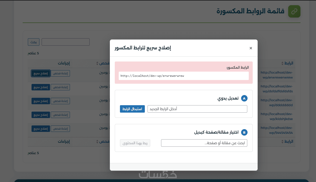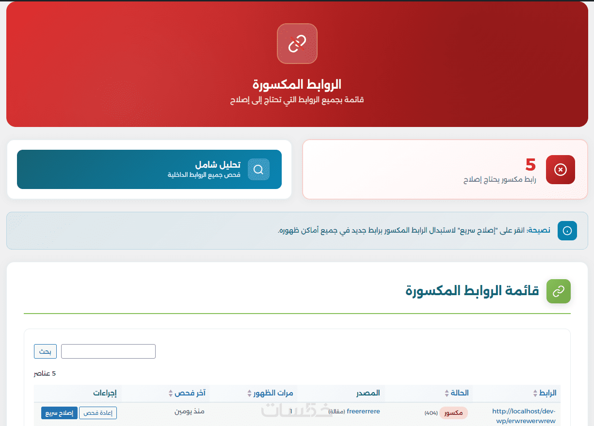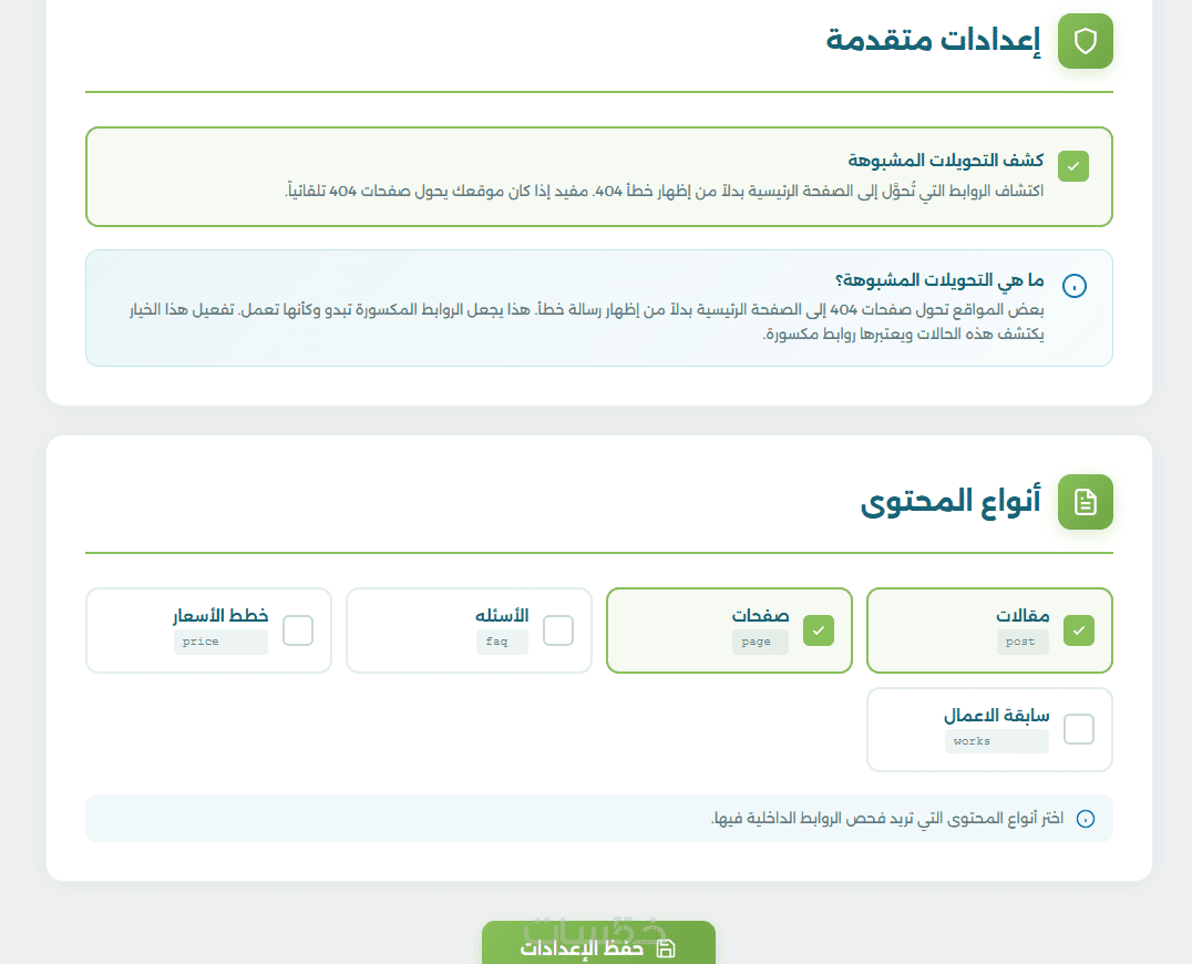 - Redirection لمعالجة أغلب مشاكل الويب الشائعة مثل صفحات 404.