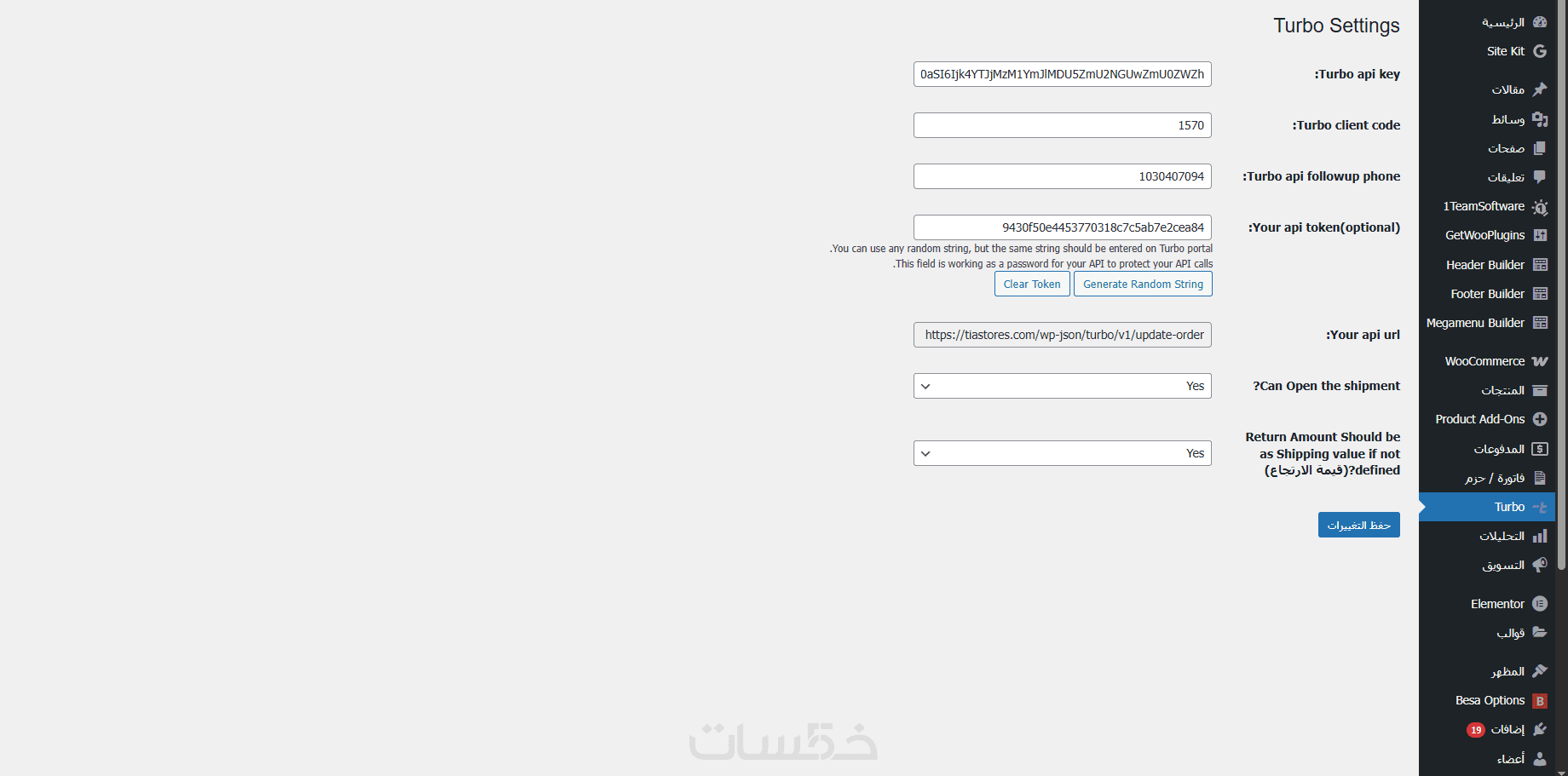 ربط الأضافه بواجهة تحكم API خارجيه واحده