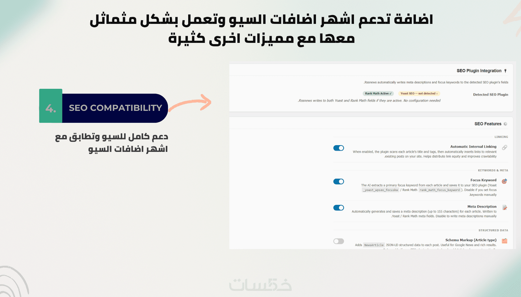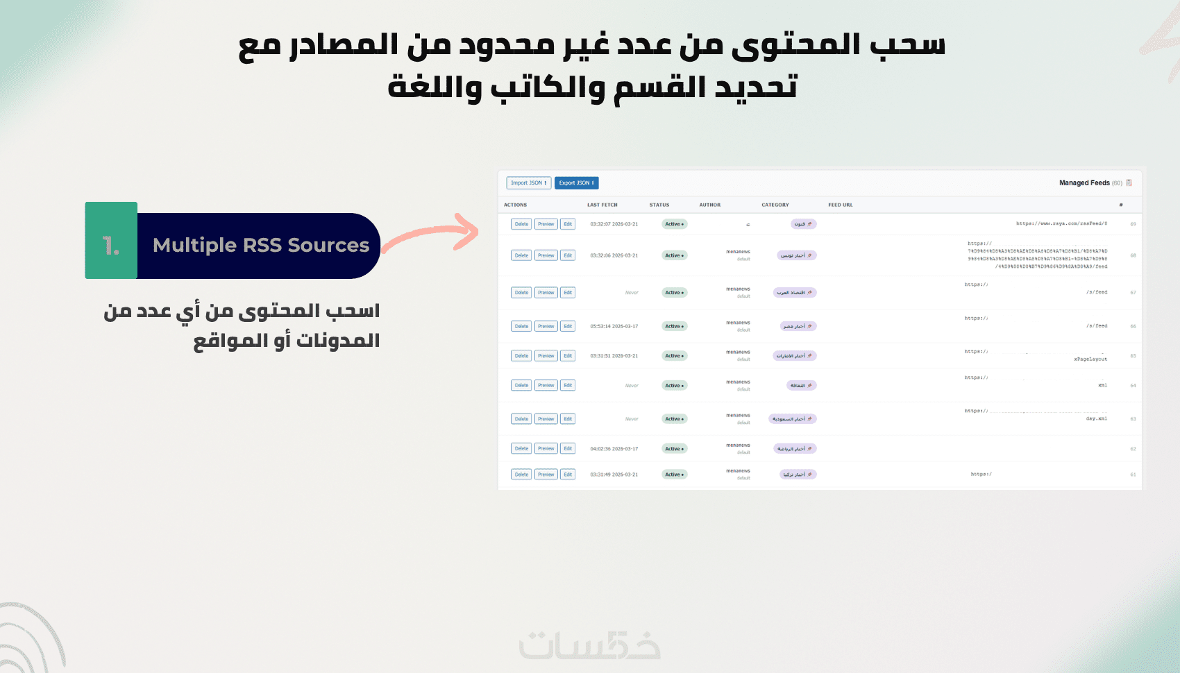 إضافة ووردبريس تتيح لك جلب المحتوى تلقائيًا من عدة خلاصات RSS، ثم إعادة كتابته بأي لغة مع الصورة الاصلية، او توليد صور بالذكاء الاصطناعي، ونشر المقالات مباشرة على موقعك. كل ذلك مع تحكم كامل في أسلوب إعادة الكتابة، اللغة، الصور، مصادر المقالات، مواعيد النشر والمزيد في أداة واحدة مؤتمتة بالكامل.
