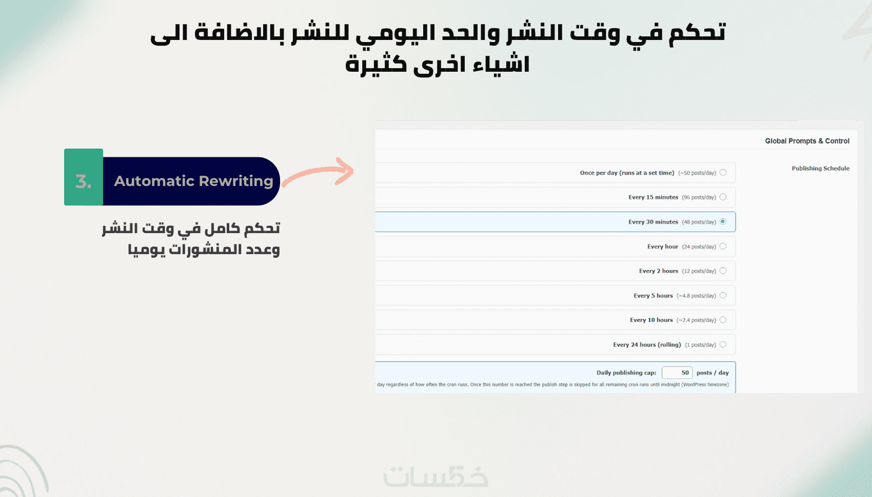 ✔ تحكم كامل في وقت النشر ومرات النشر اليومية واسلوب الكتابة ونوع الصور