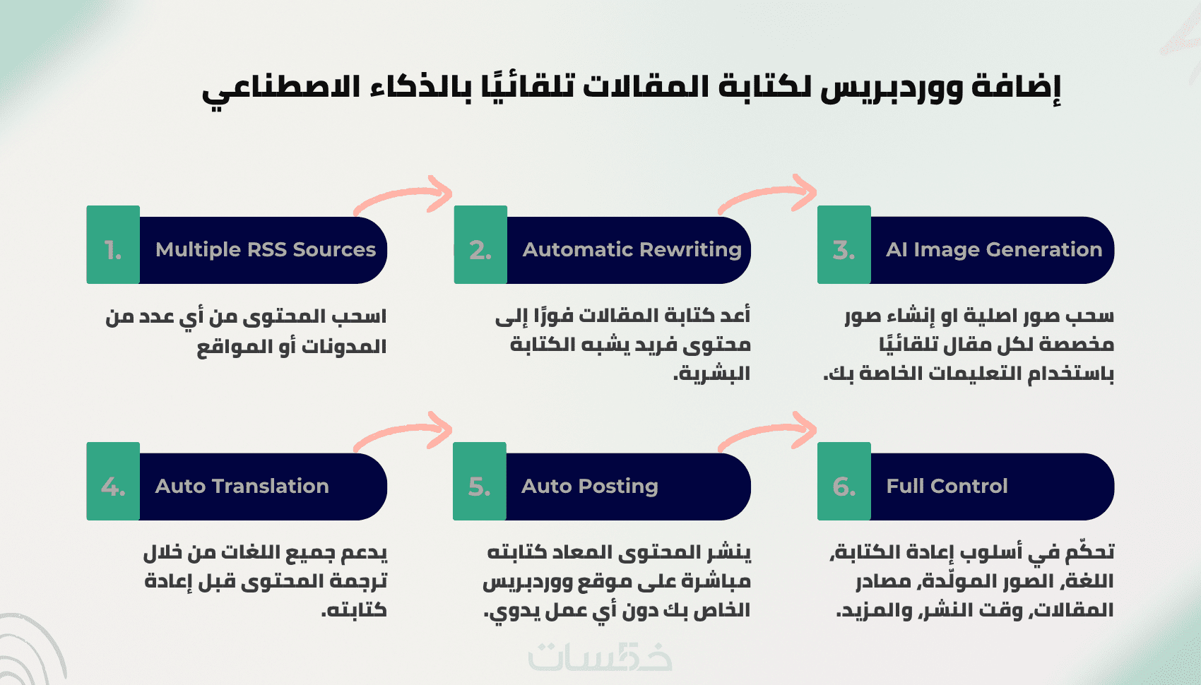 - سيتم نشر المقالات مباشرة على موقعك في ووردبريس — بشكل تلقائي تمامًا دون اي تدخل منك.