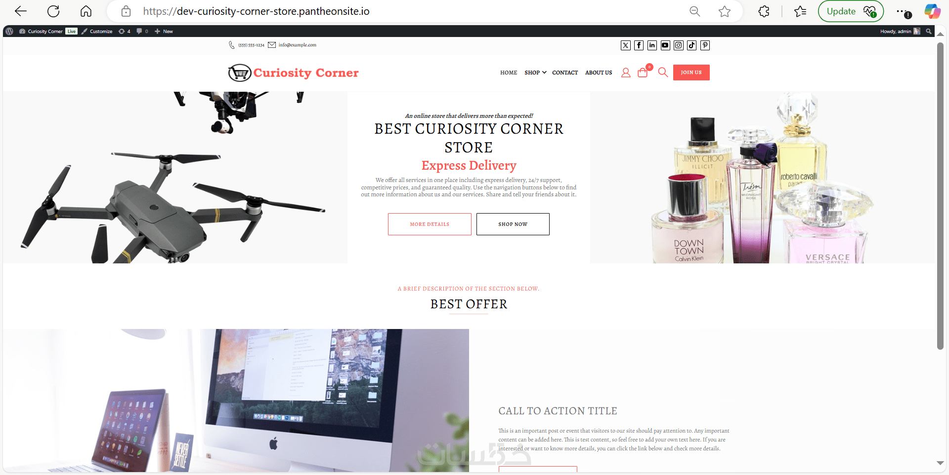 ضبط اعدادات القالب وضع جميع بيانات نشاطك ووسائل التواصل و تغير الالوان الرئيسية و اضافة شعارك للموقع