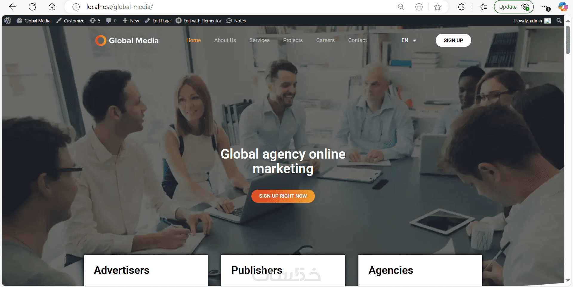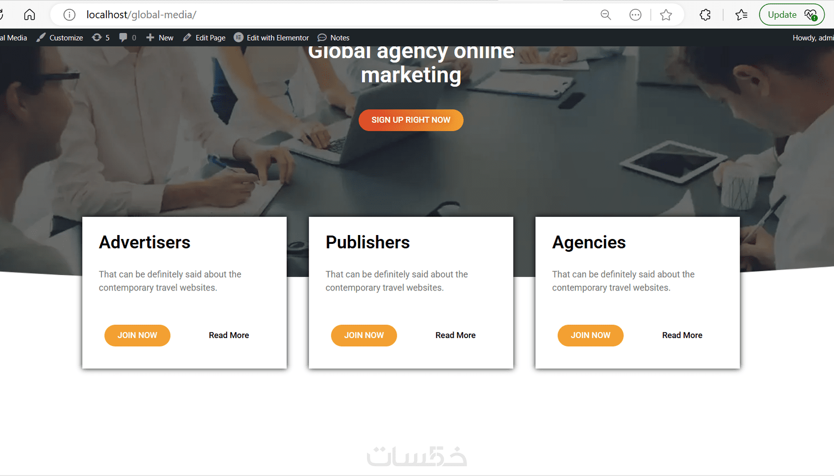 تصميم احترافى للرئيسية مع 3 صفحات مثال : ( المدونة - خدماتنا - تواصل معنا - عنا )