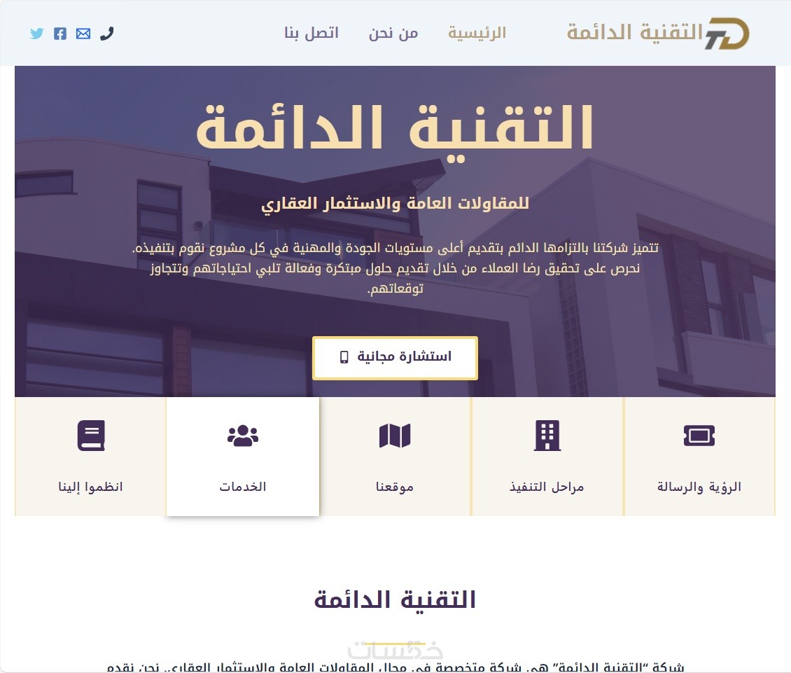 تصميم 3 صفحات (الرئيسية- من نحن - اتصل بنا)
