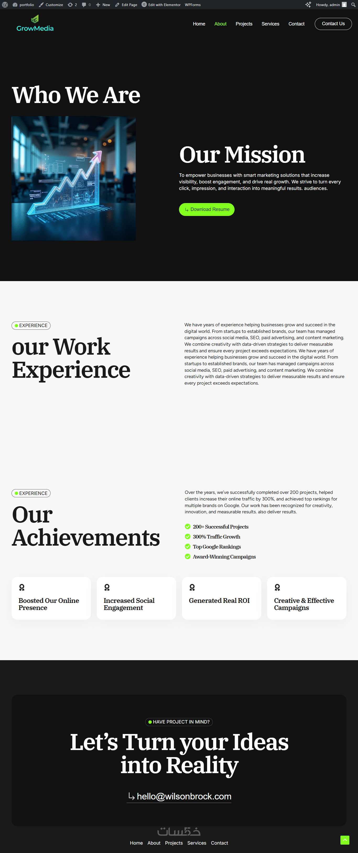 سأقوم بإنشاء بورتفوليو كامل على ووردبريس بتصميم عصري ومتجاوب، يعكس هويتك المهنية ويزيد من فرصك في جذب العملاء.