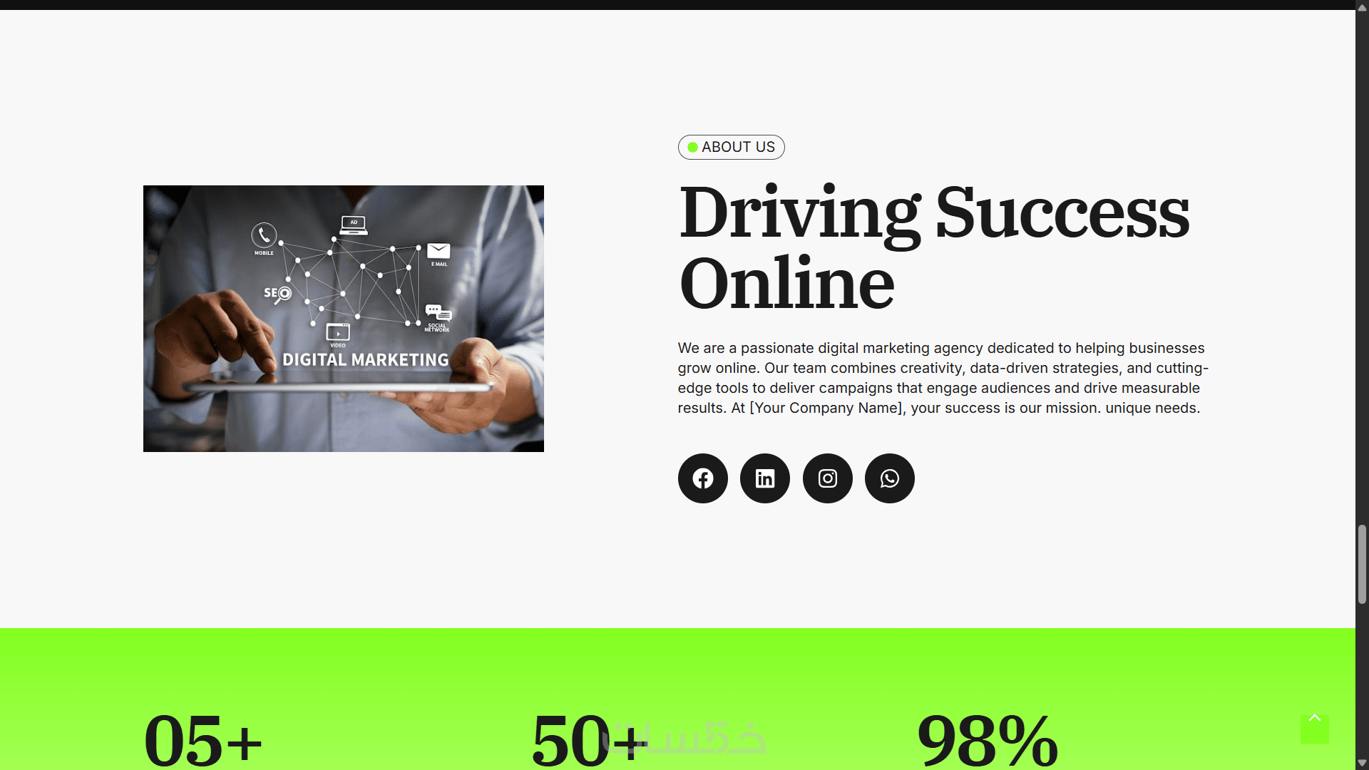 صفحة رئيسية جذابة مع أقسام منظمة.
