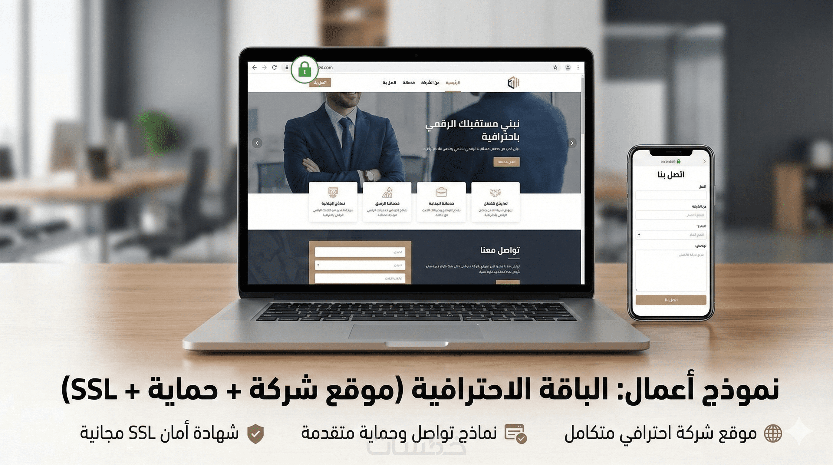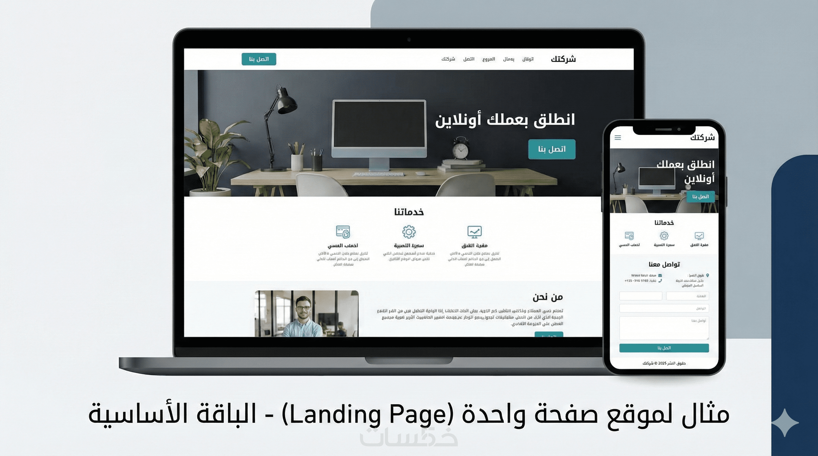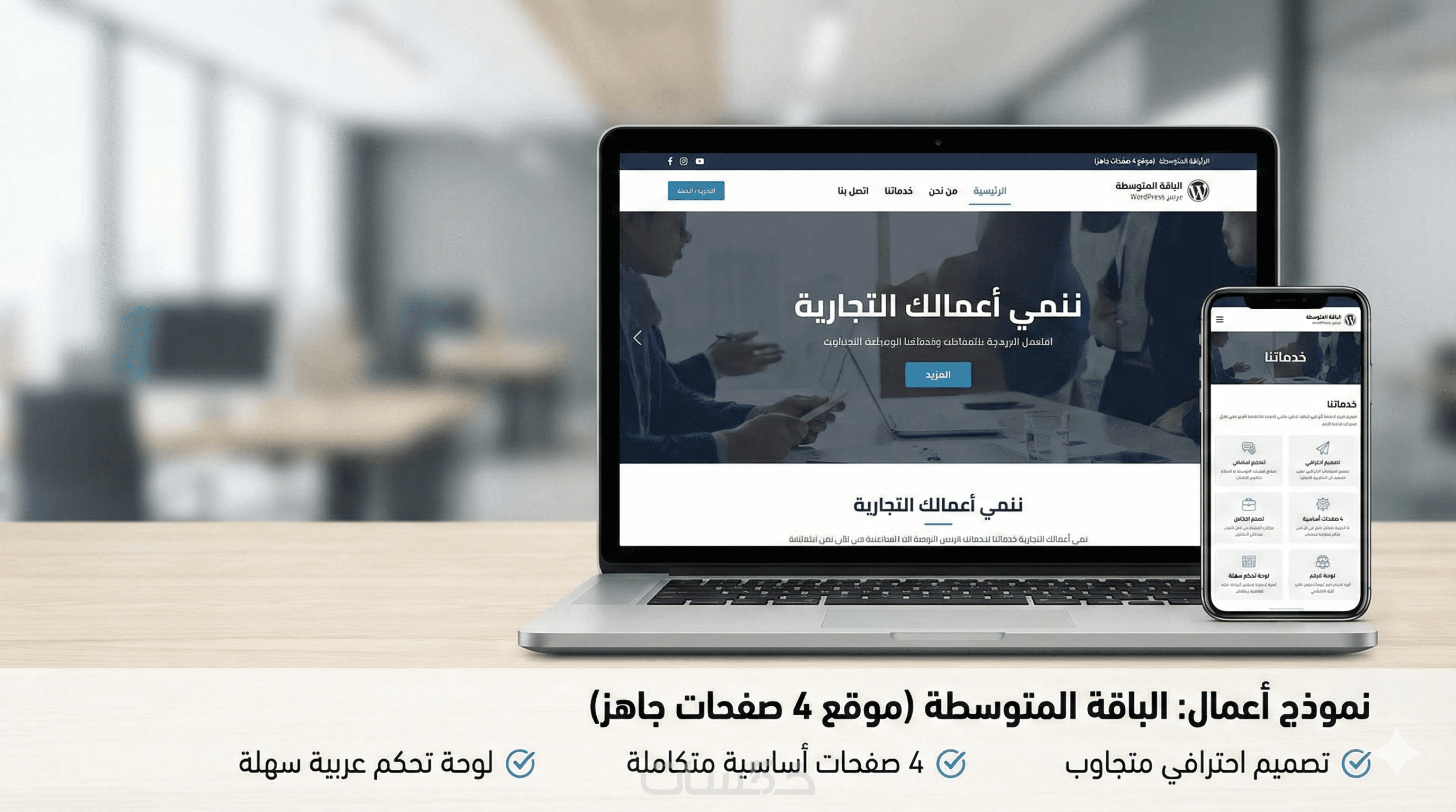 ✔ صفحات (الرئيسية – من نحن – الخدمات – التواصل)