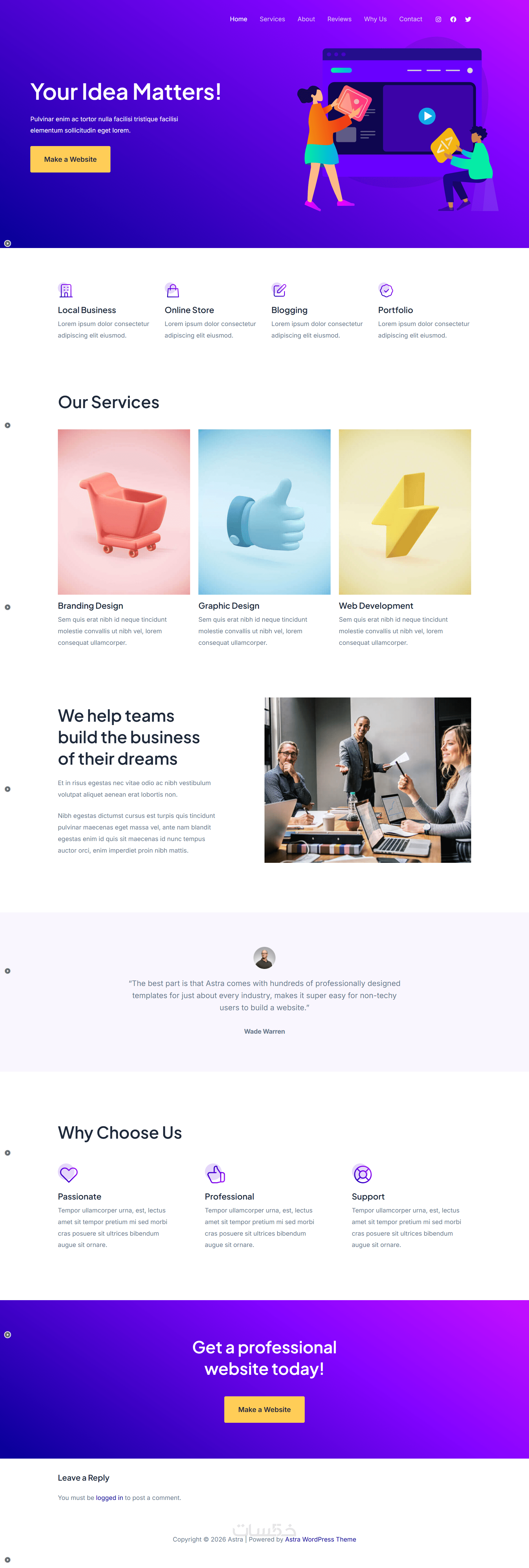 أقوم بتنفيذ الموقع على القالب الذي يحدده العميل، أو استخدام قالب Astra في حالة عدم وجود قالب.