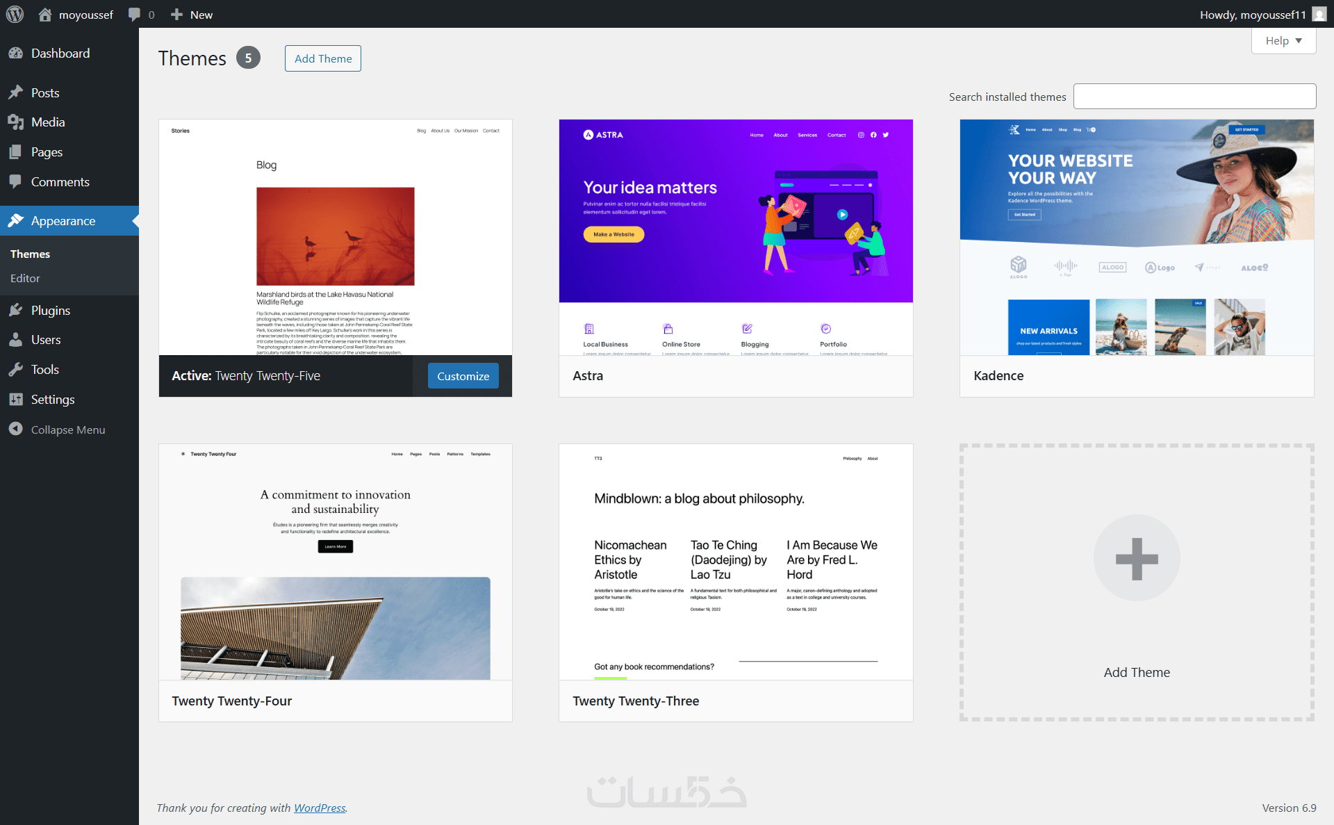 وفي حالة عدم اختيار قالب، سيتم استخدام قالب Astra الخفيف والسريع.