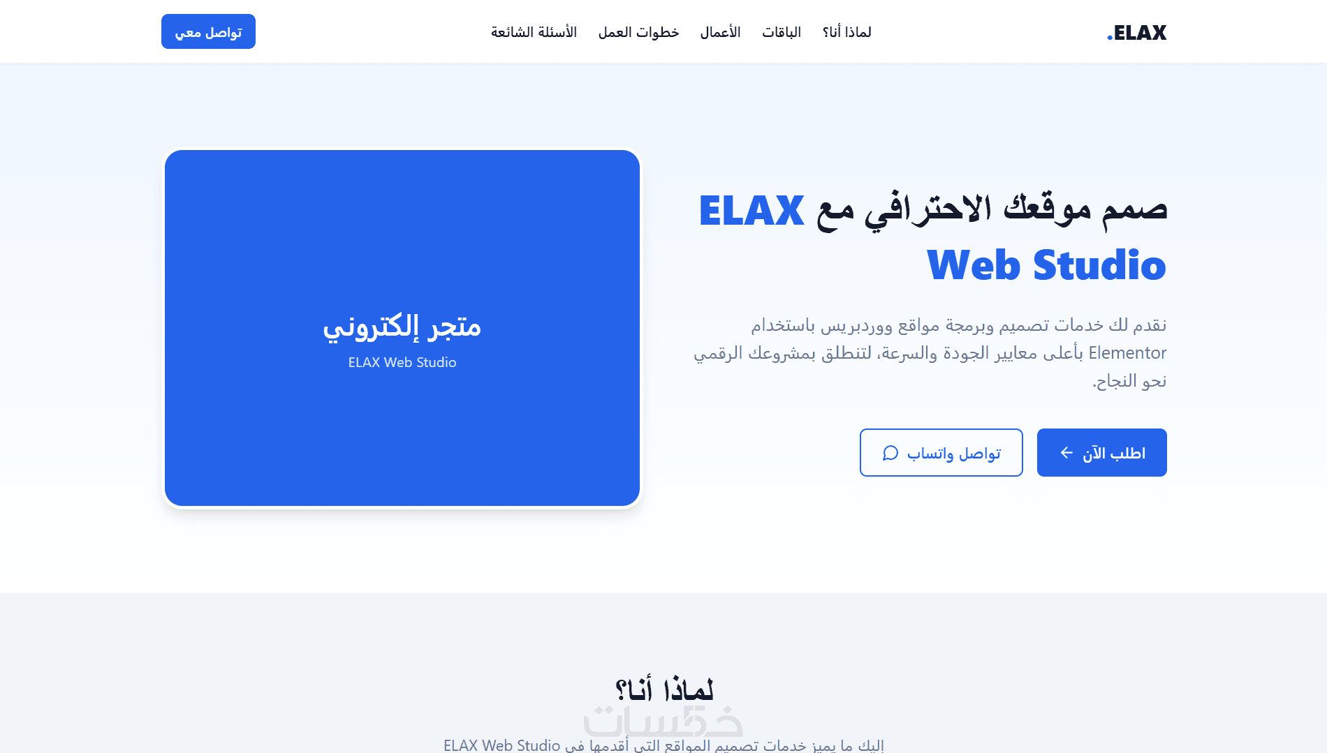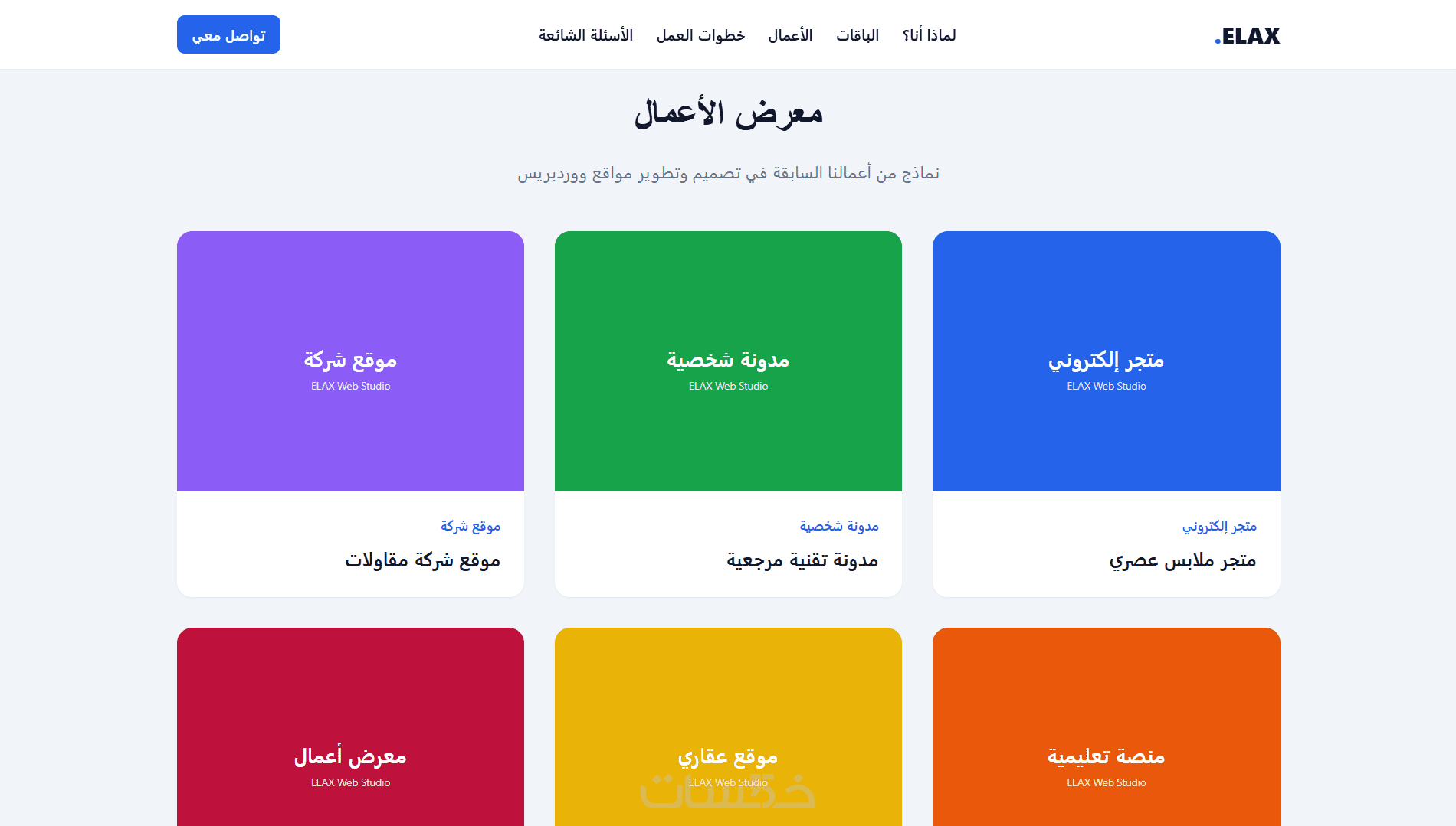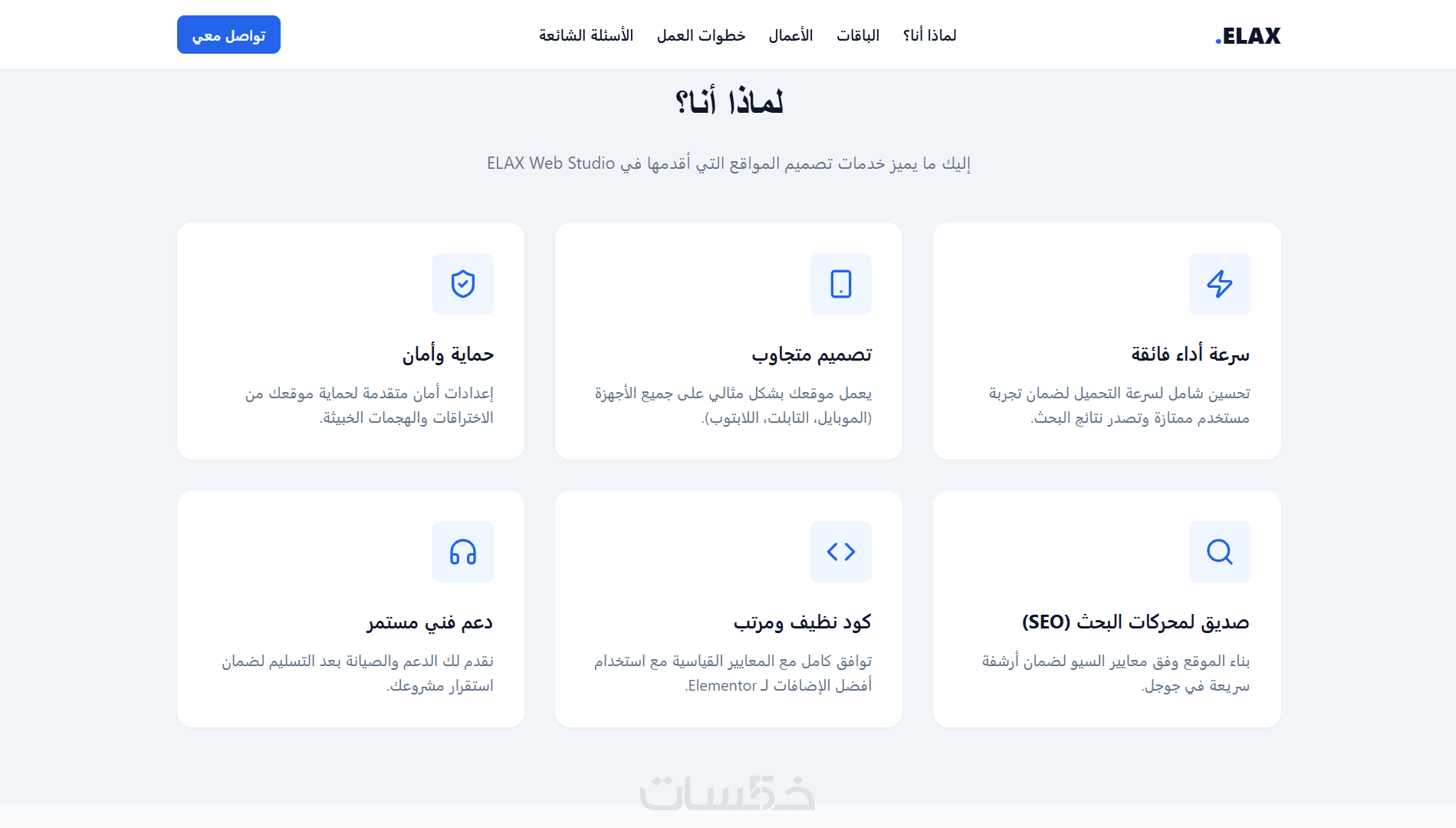 باقات + أعمال + خطوات + FAQ + تواصل، بنفس منطق صفحات الخدمات الناجحة.