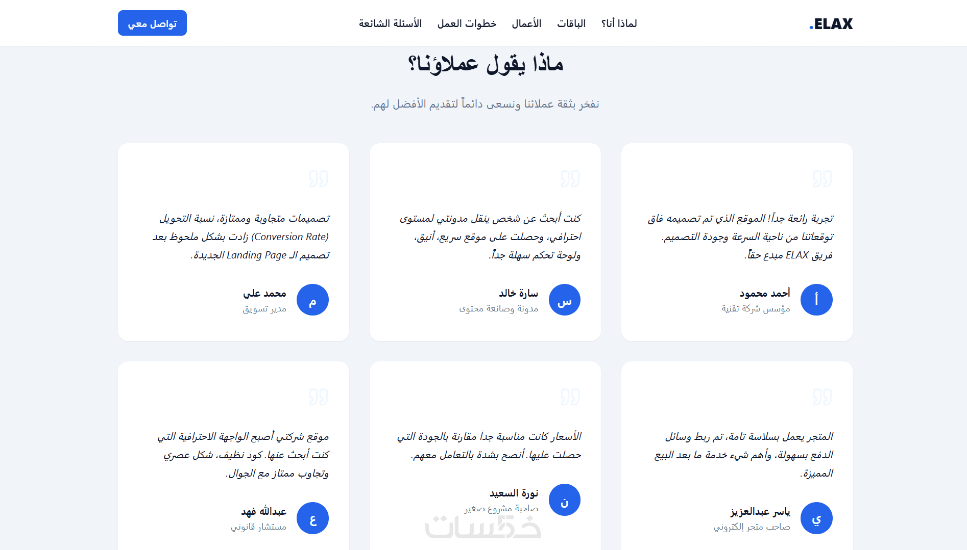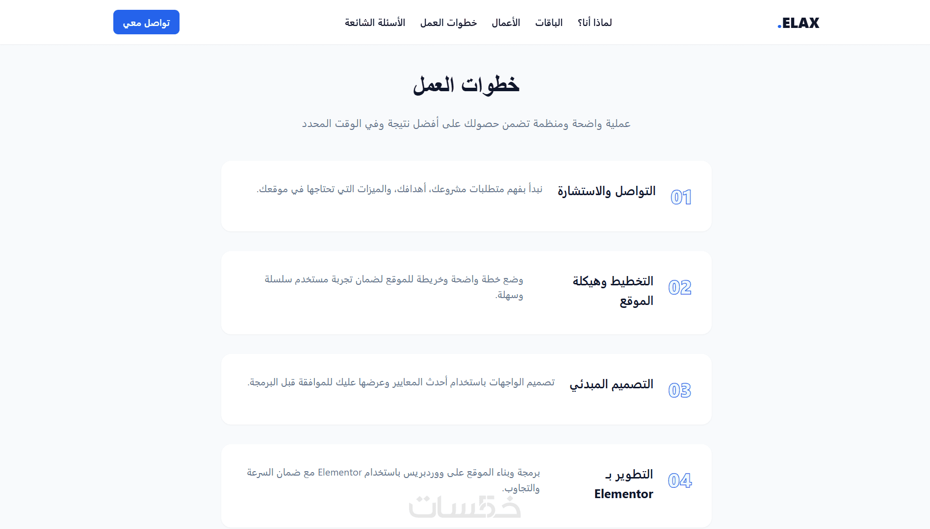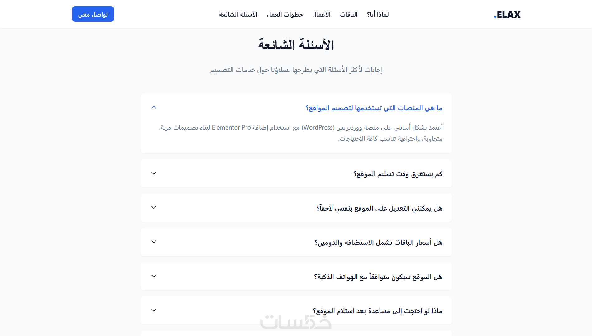 باقات + أعمال + خطوات + FAQ + تواصل، بنفس منطق صفحات الخدمات الناجحة.