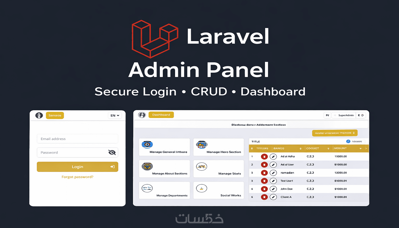 سأقوم ببناء لوحة تحكم آمنة باستخدام Laravel وLivewire، تتضمن