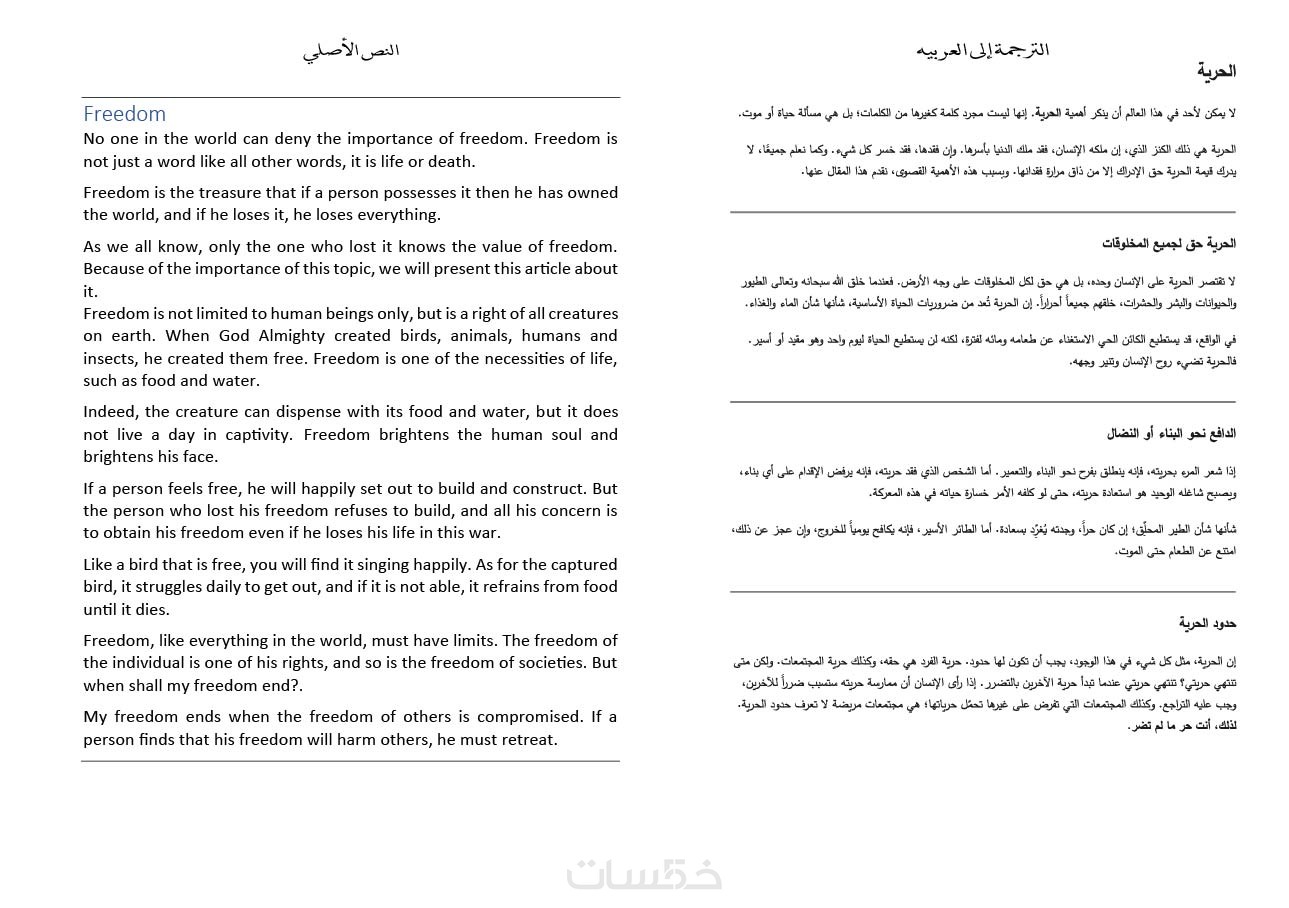 ترجمة بشرية من الإنجليزية للعربية والعكس