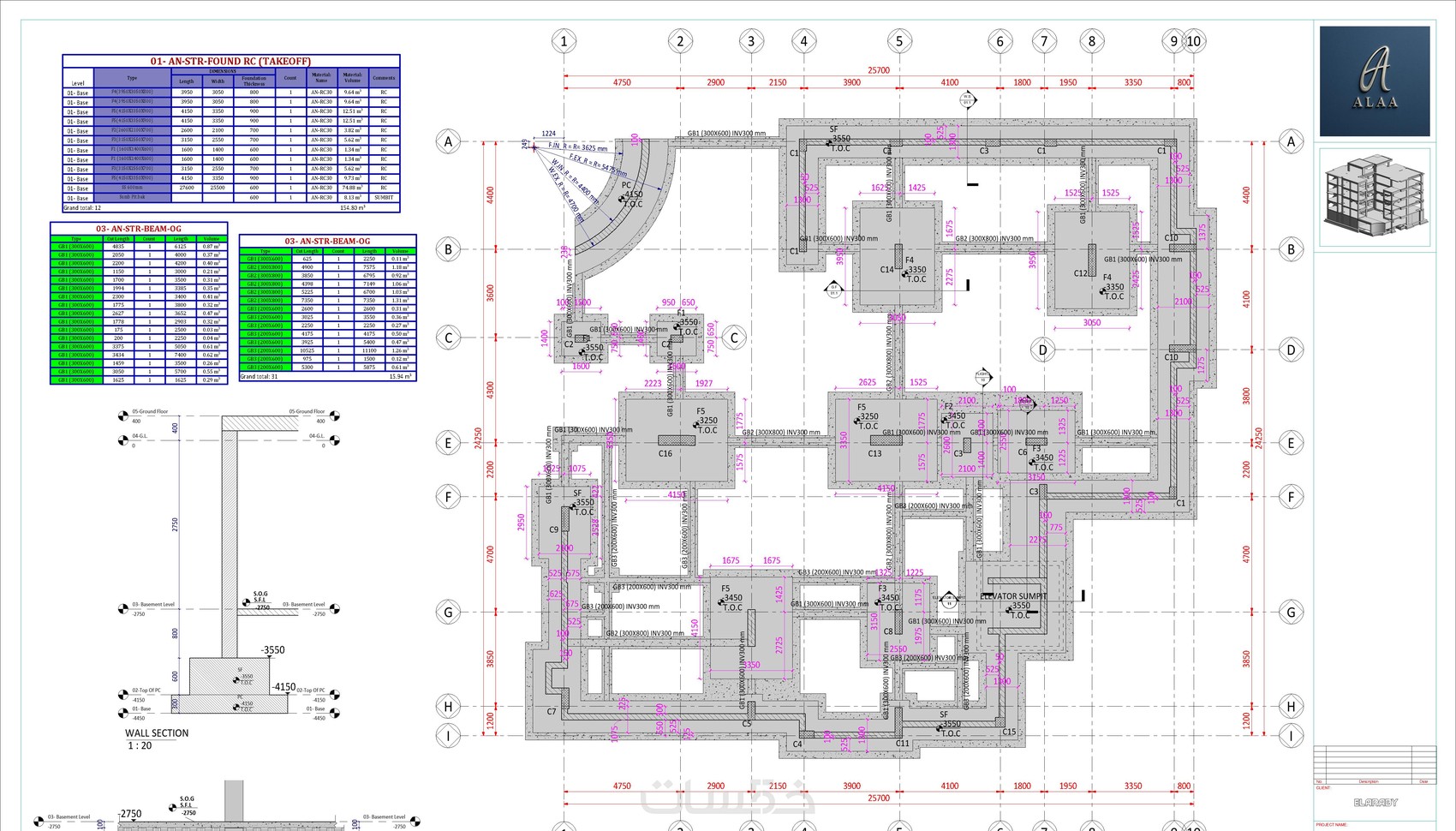 تصميم المنشآت الخرسانية ورسم كافة التفاصيل مع حساب الكميات