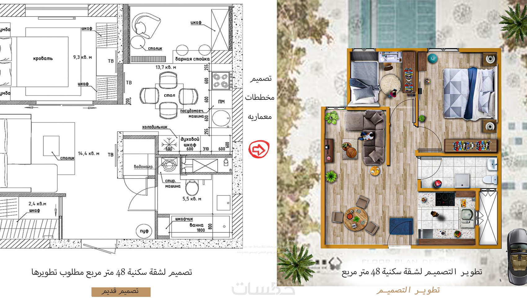 تطوير التصميم المعماري لشقه سكنيه بمساحات متعدده