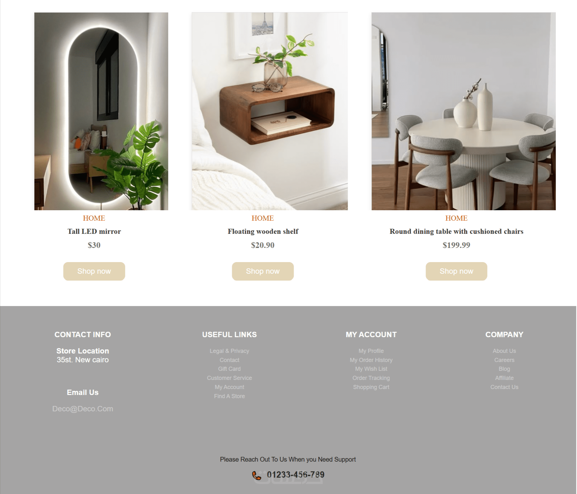 إنشاءصفحة هبوط احترافية وجذابة لموقع (Deco) - موقع أثاث مميز