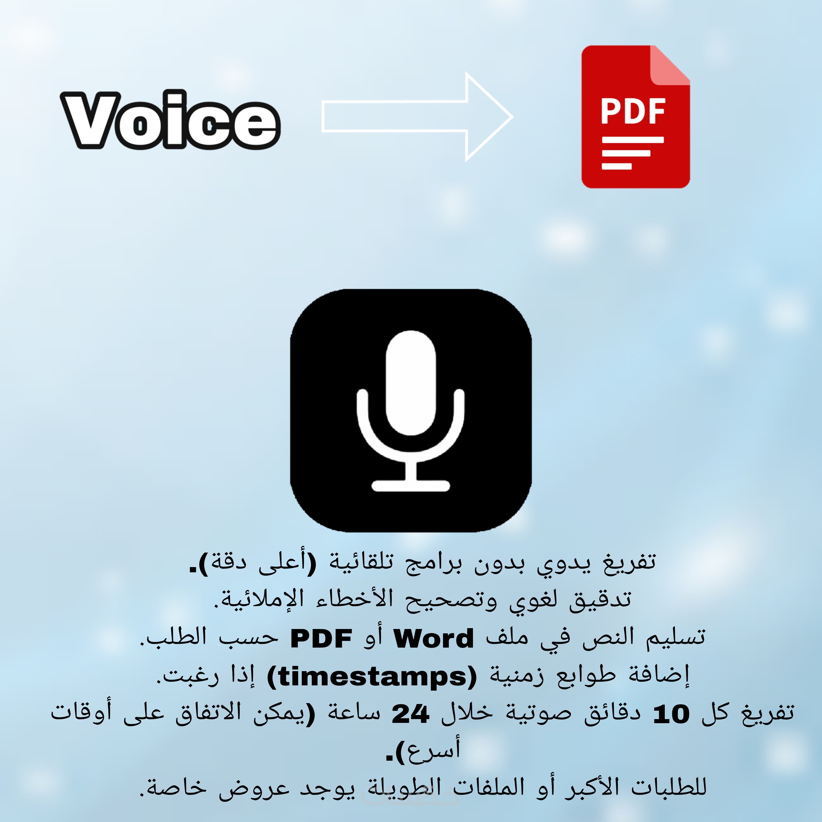 تفريغ احترافي للصوتيات إلى نص عربي أو إنجليزي بدقة عالية