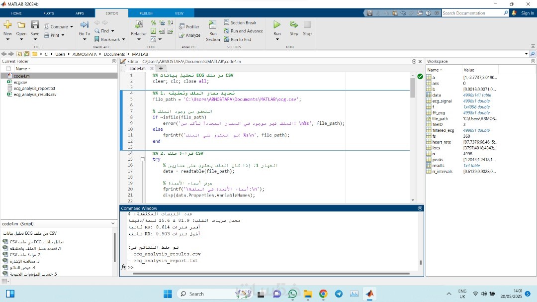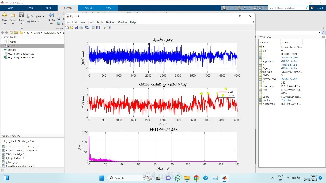تصميم نظام تحليل ECG متكامل في MATLAB مع Savitzky-Golay