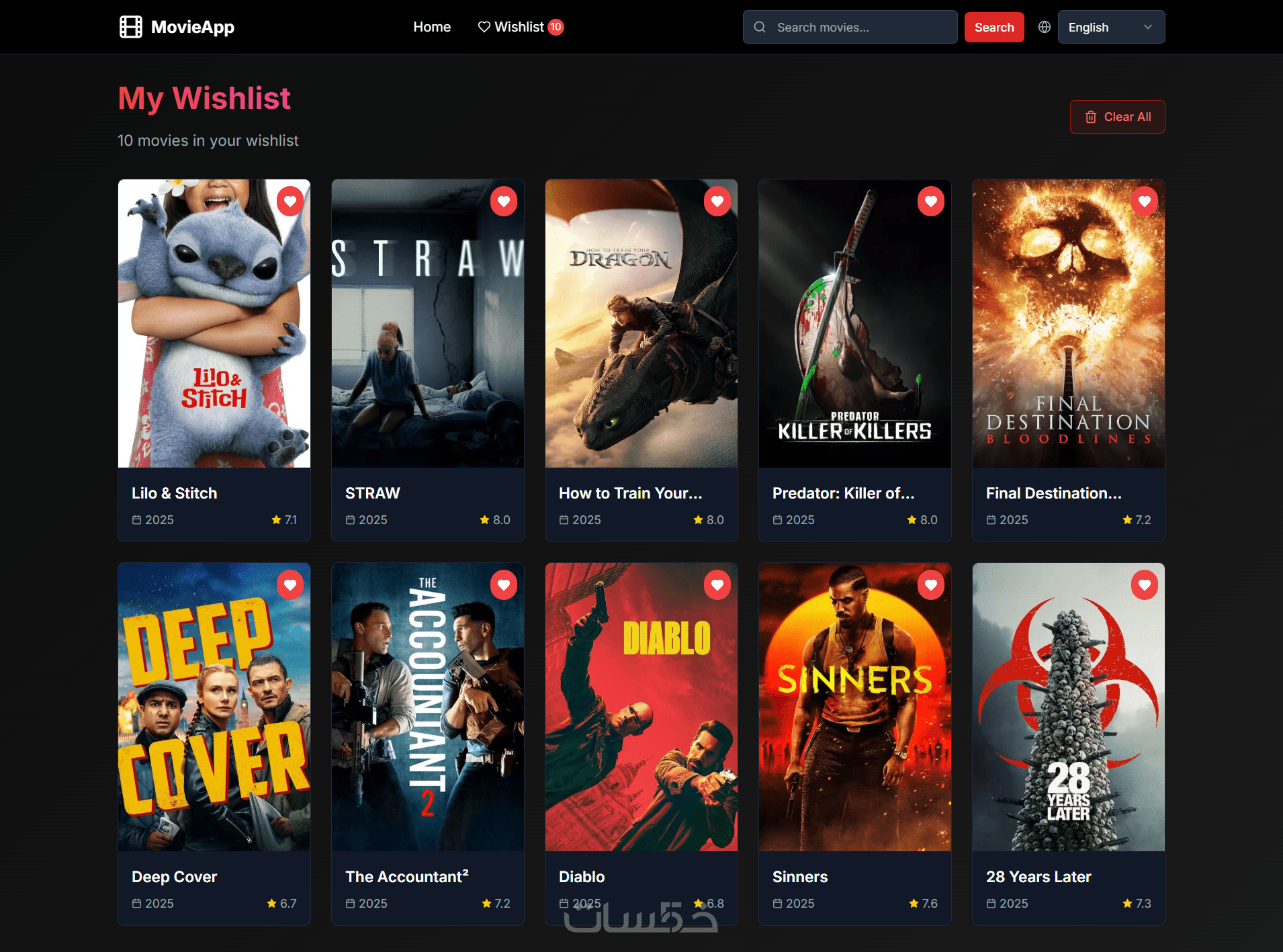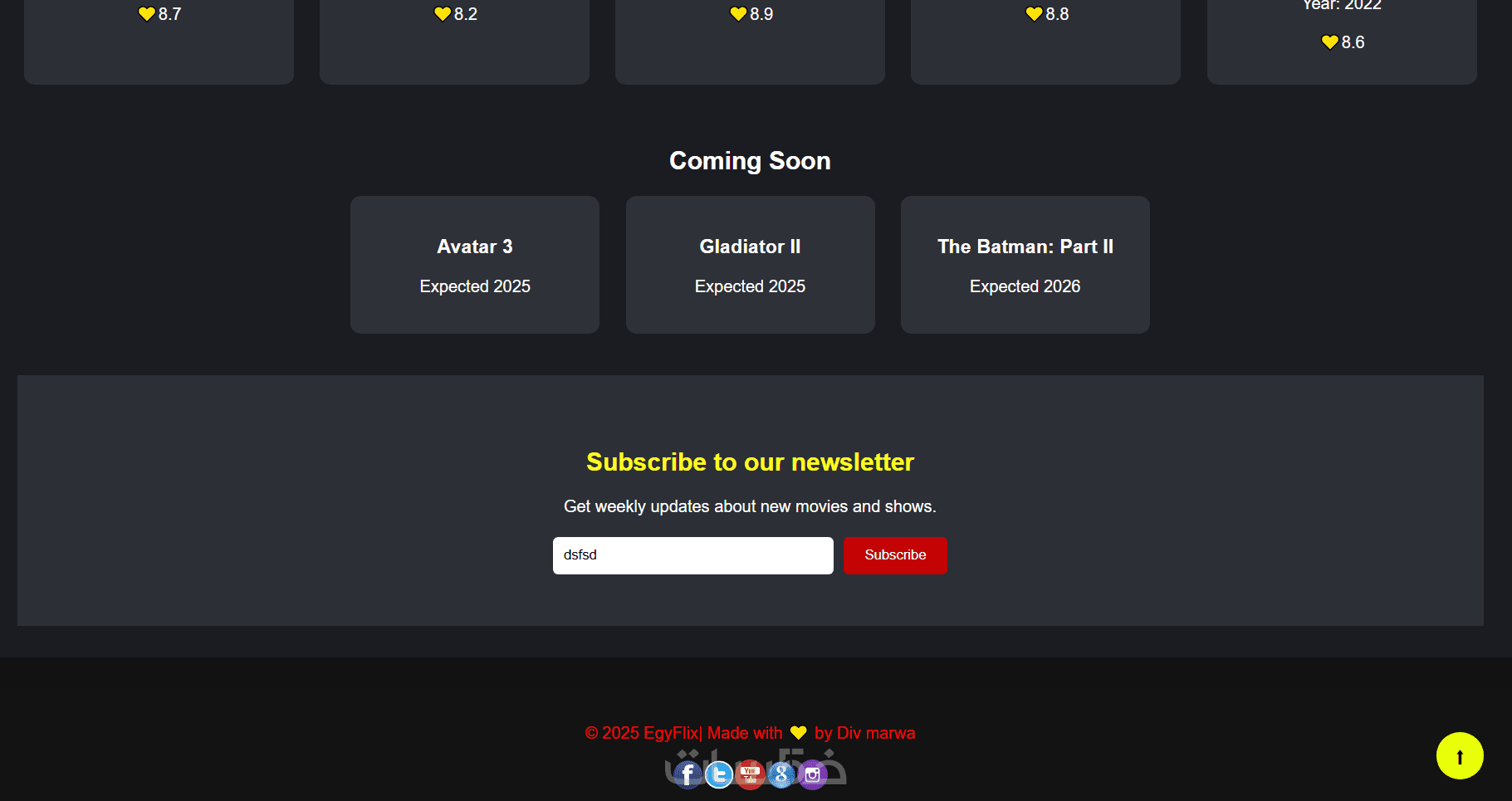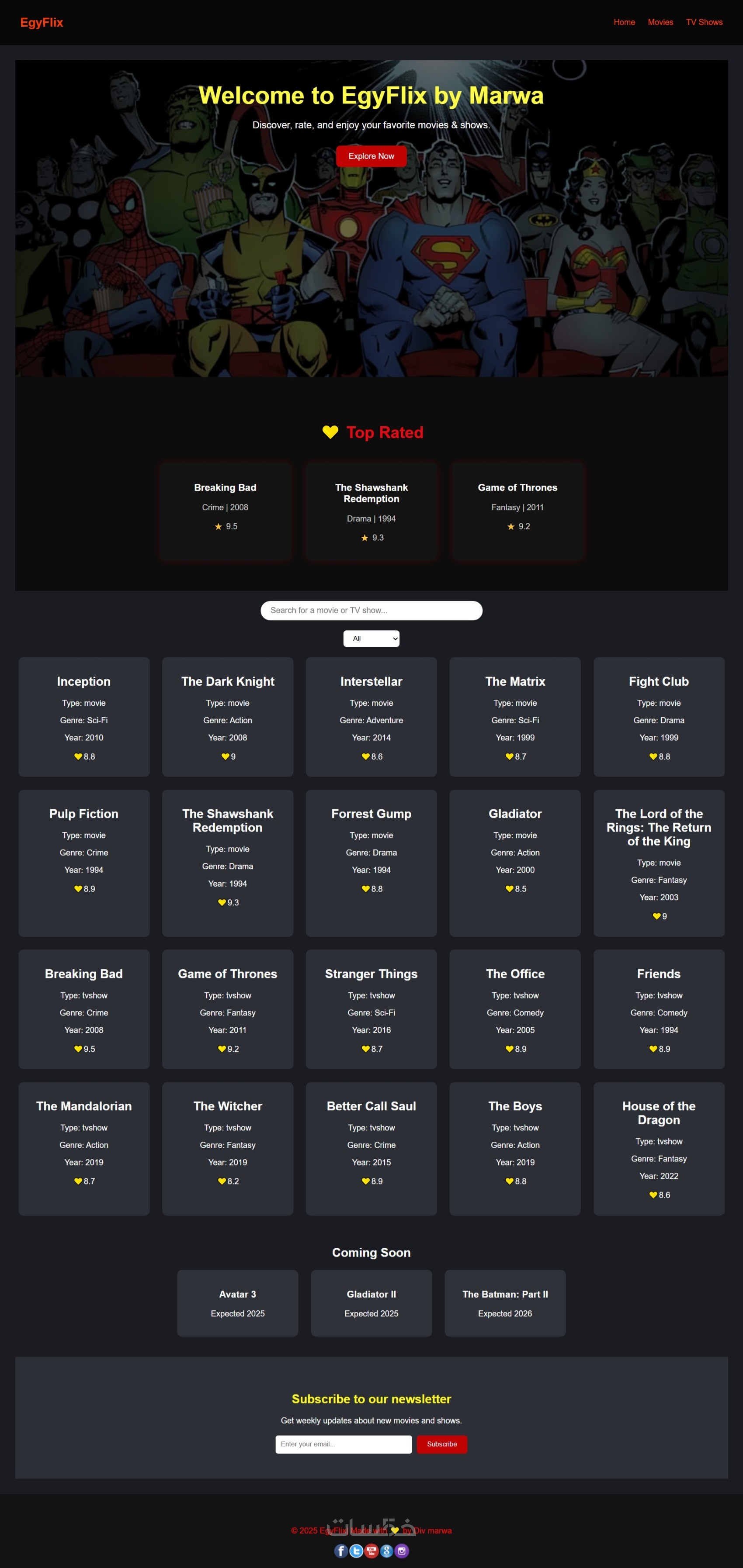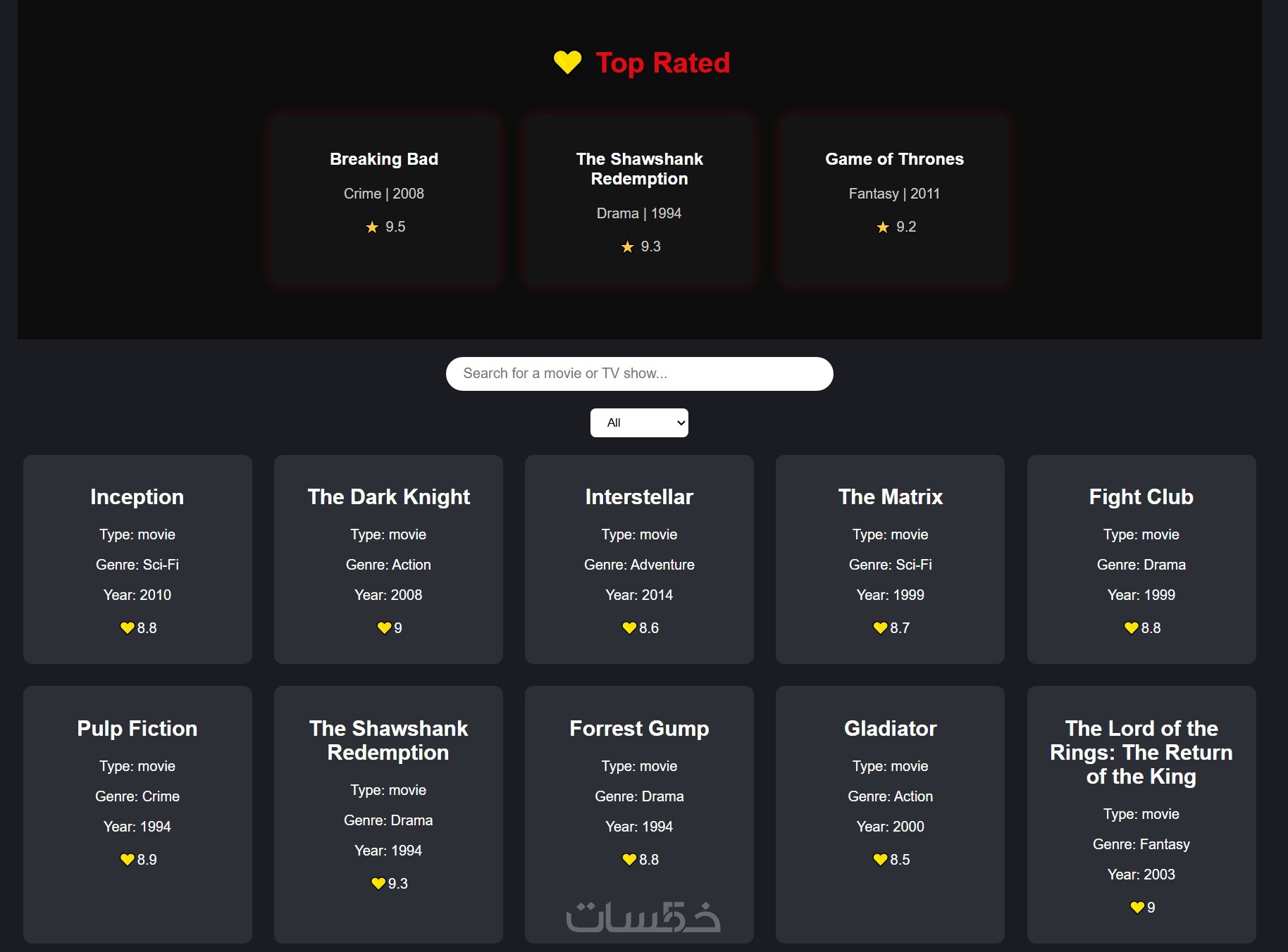 منصة أفلام تفاعلية لعرض التصنيفات والتقييمات
