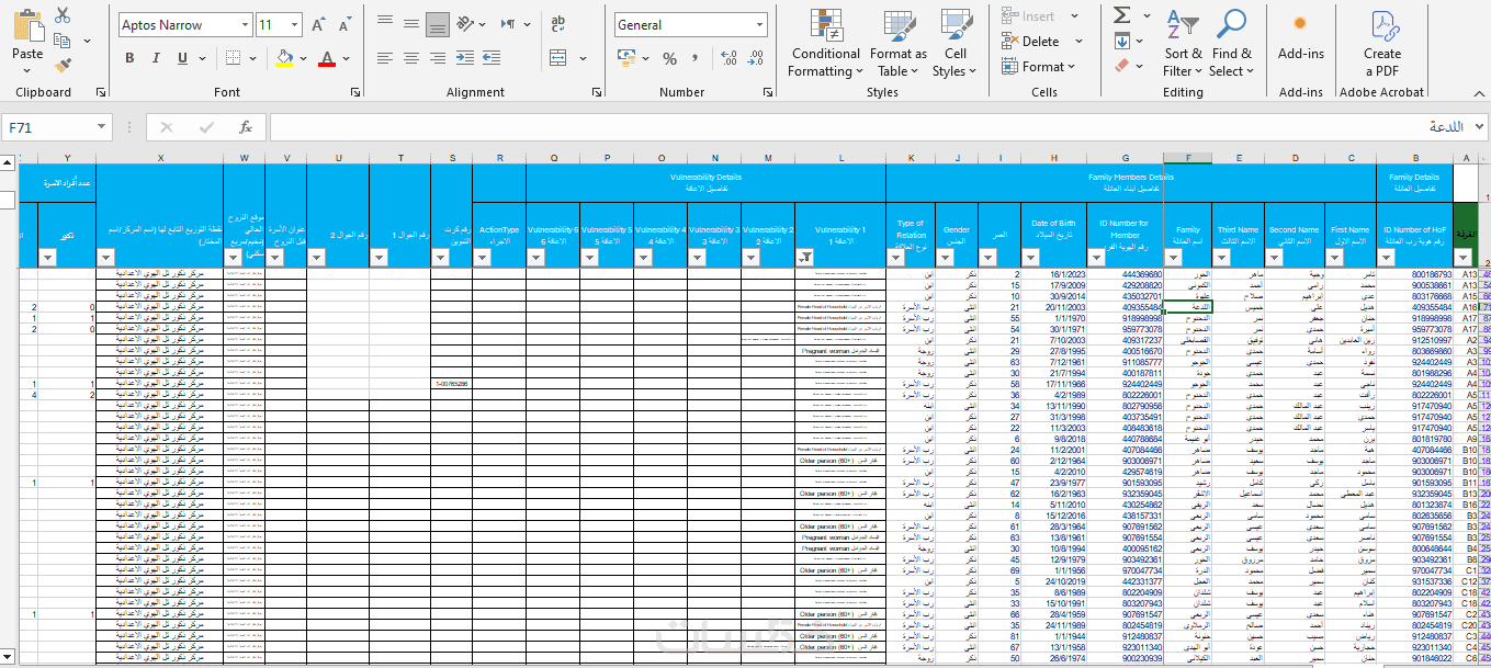 إدخال البيانات إلى ملف أكسل EXCEL وتنسيقها