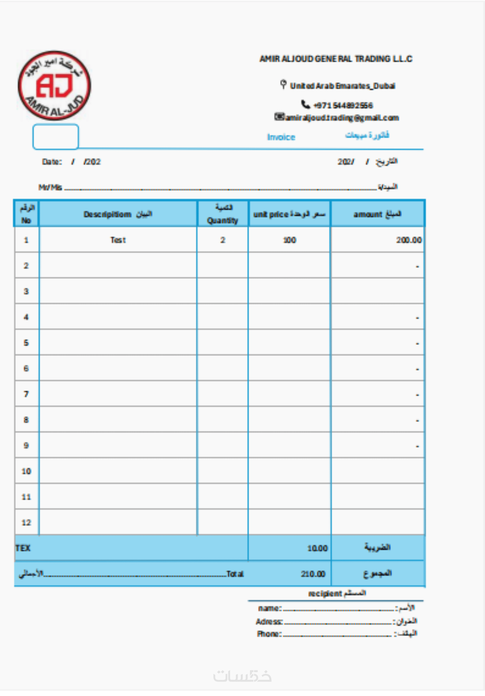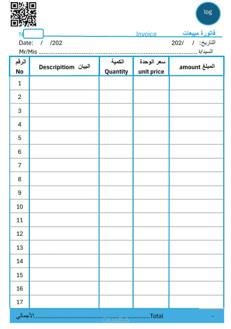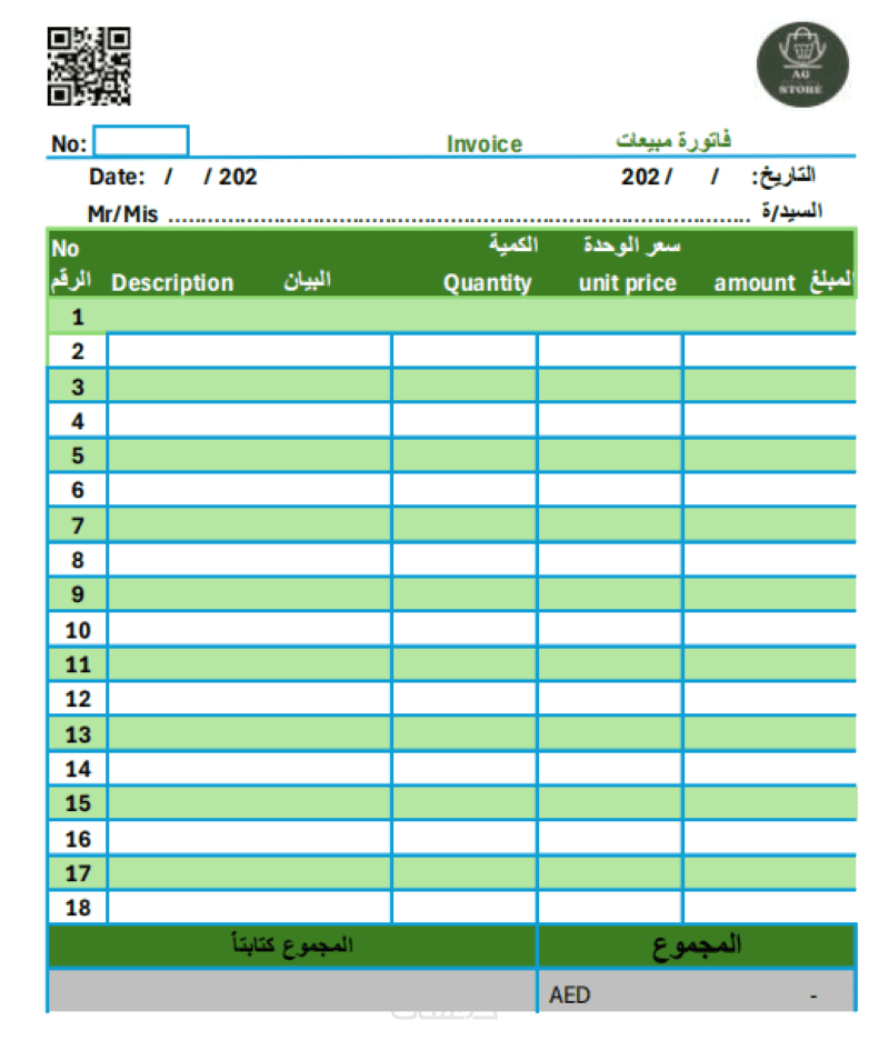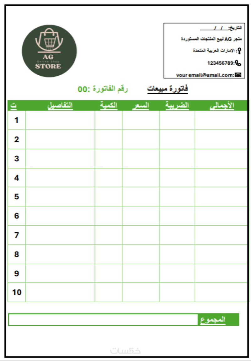 تصميم فاتورة مبيعات بصيغة وورد او أكسل