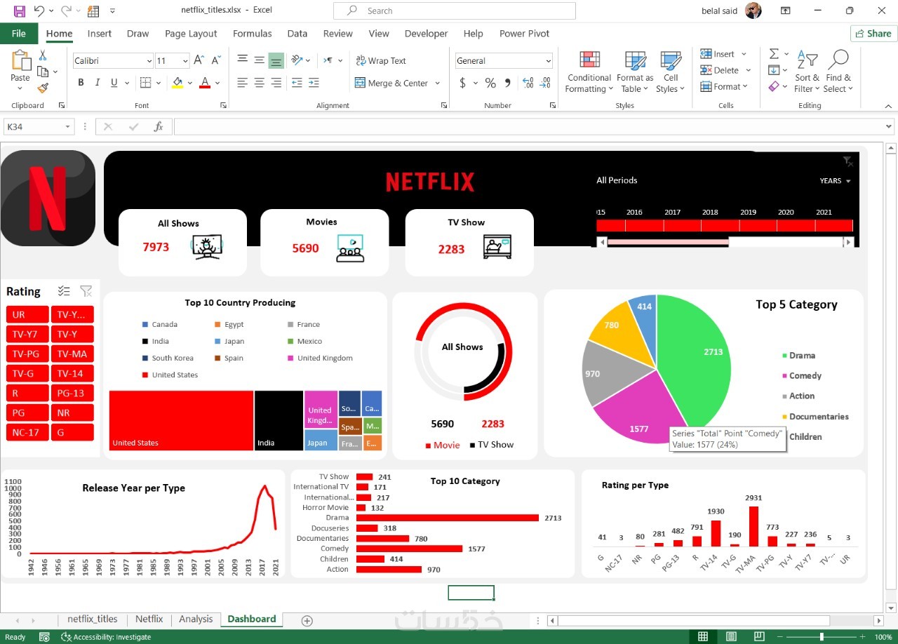انشاء داشبورد تفاعلى باستخدام أكسيل Excel