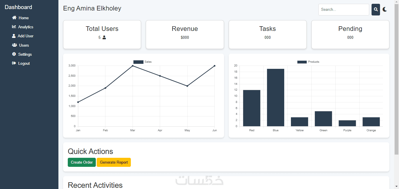 تطوير لوحة تحكم dashboard بواجهة أنيقة و سهلة