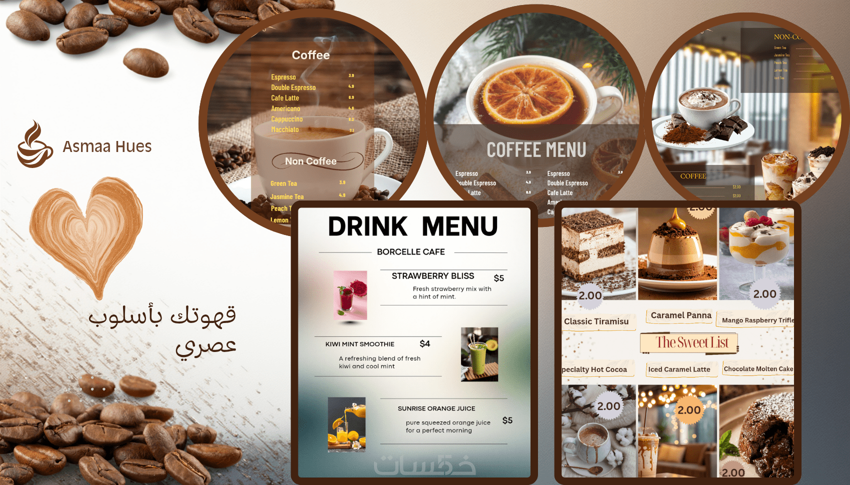 تصميم منيو رقمي بوست إنستغرام عصري للمقاهي والحلويات