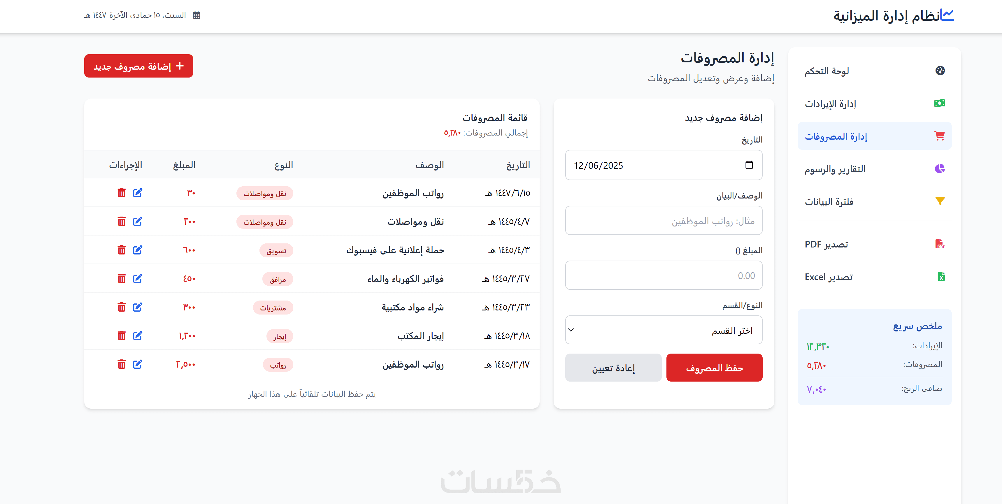 برنامج لادارة المصروفات و الايرادات لمؤسستك التجارية و حياتك