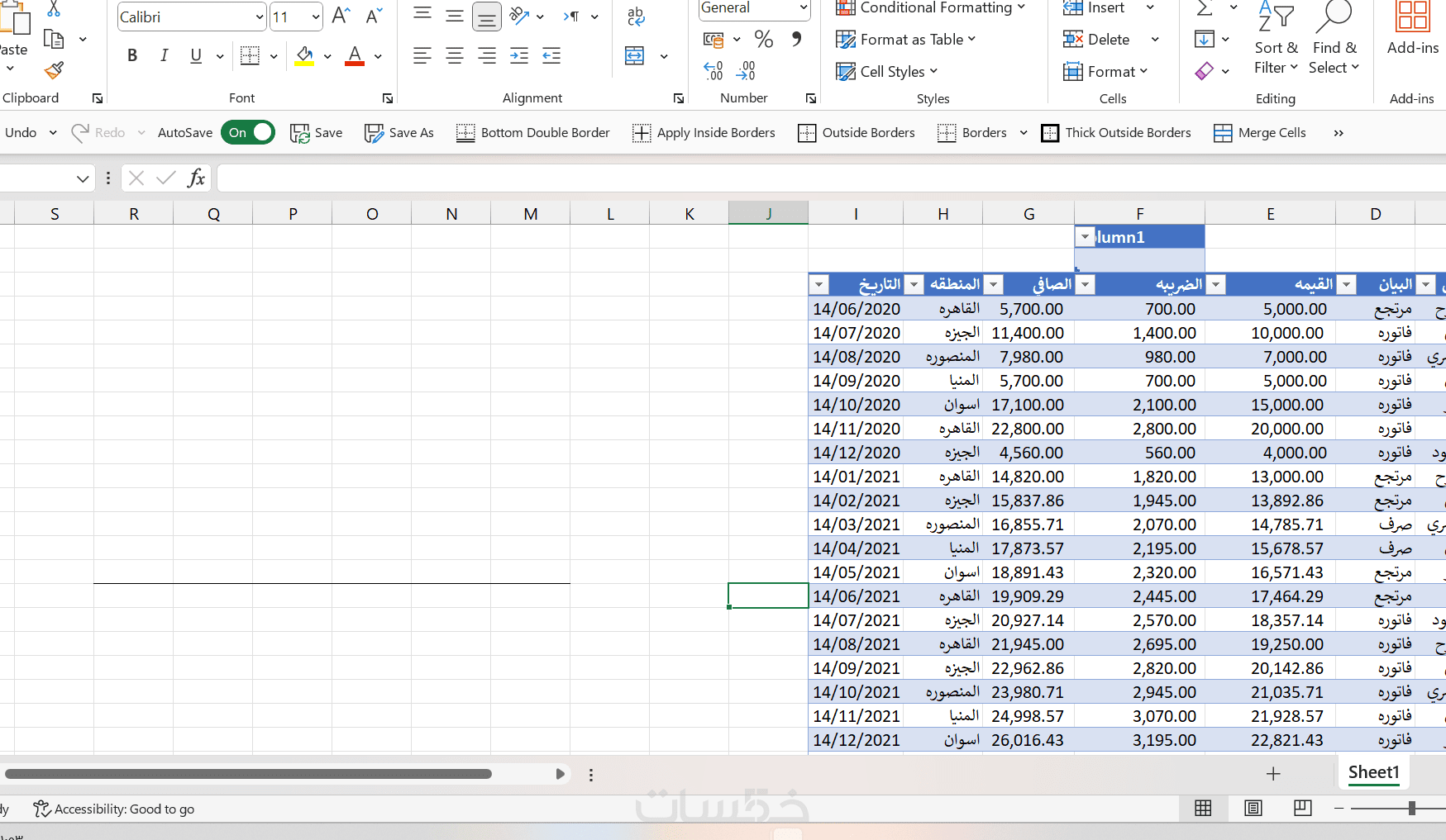 إدخال البيانات وتنسيقها (إكسيل/ جوجل شيت) (عربي-إنجليزي)