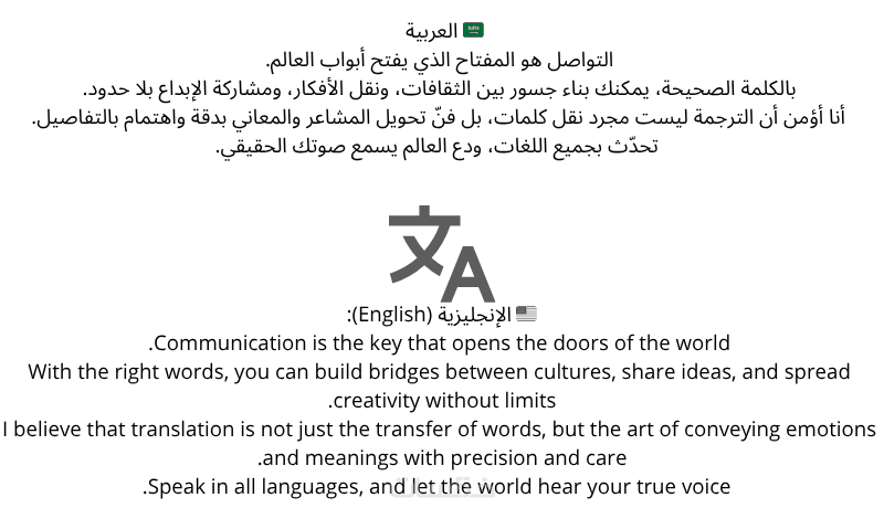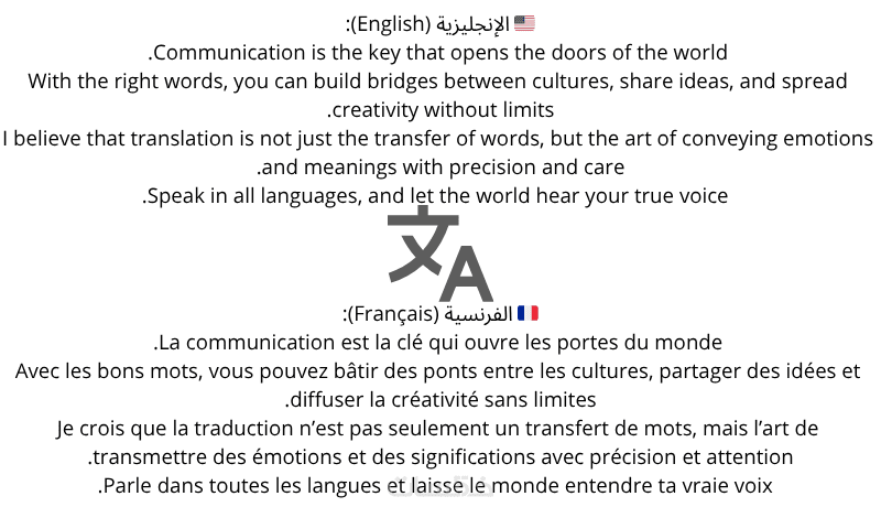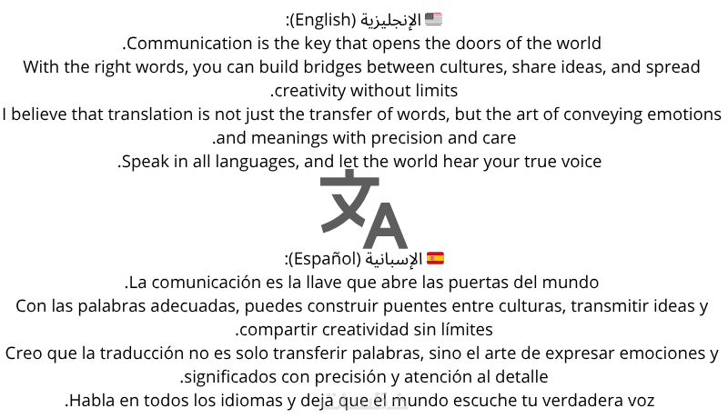 خدمة ترجمة لغات متعددة (عربية، إنجليزية، فرنسية، إسبانية)