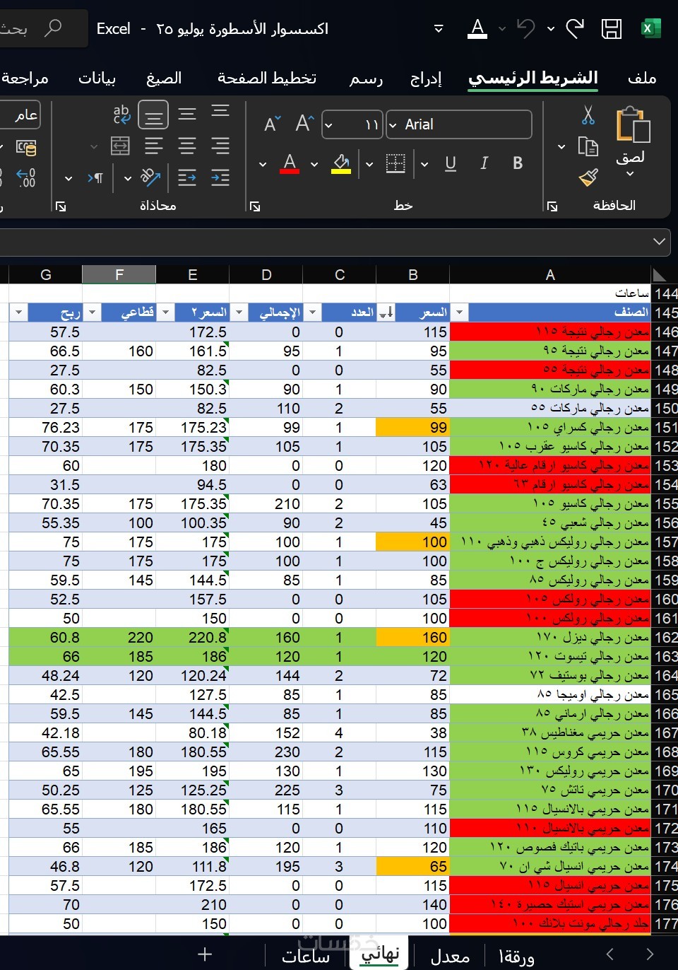 تصميم شيت إكسيل إحترافي وقاعدة بيانات ومعادلات ورسوم بيانية