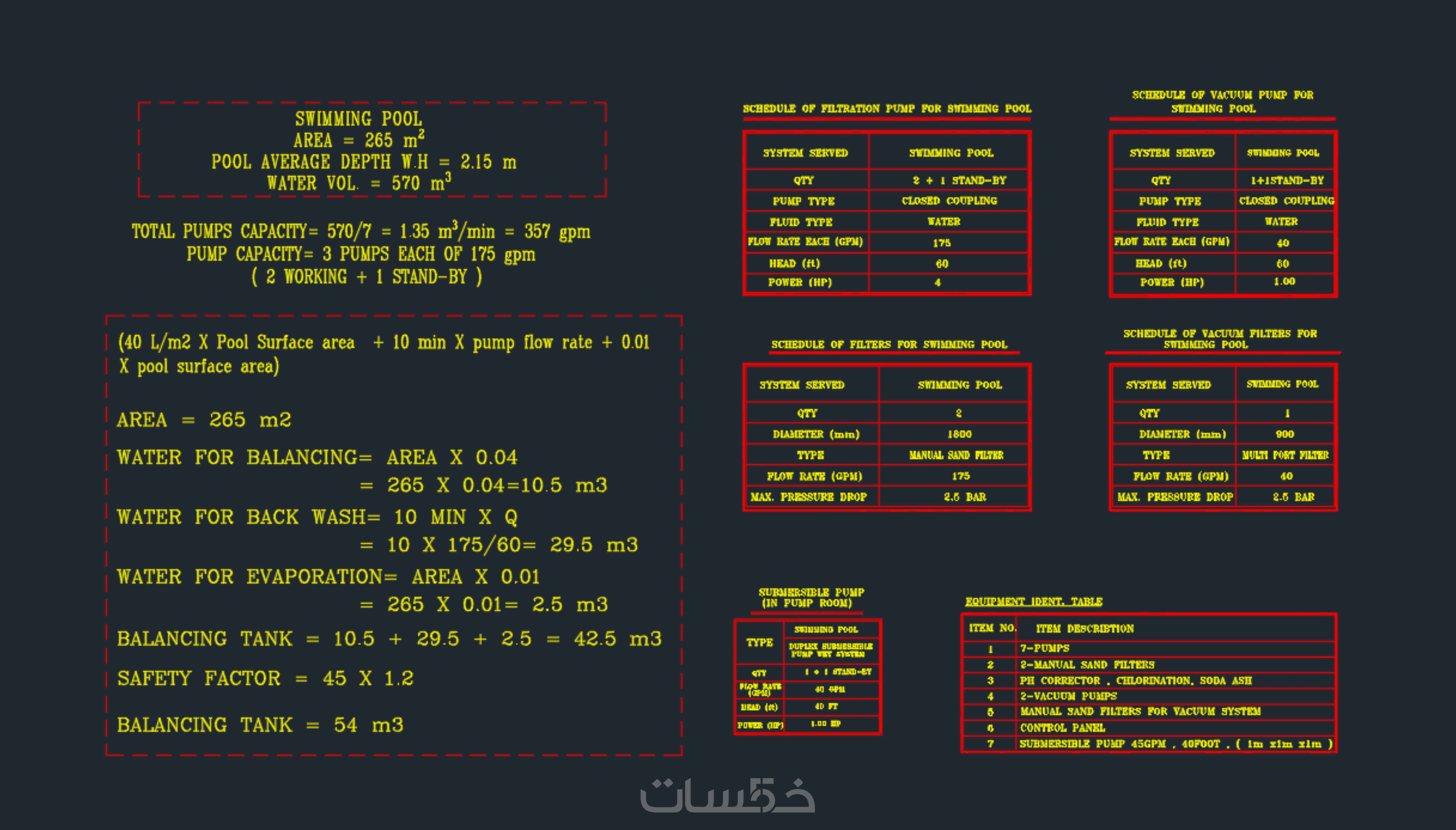 تصميم وحساب الاعمال الميكانيكية لحمامات السباحة والجاكوزي